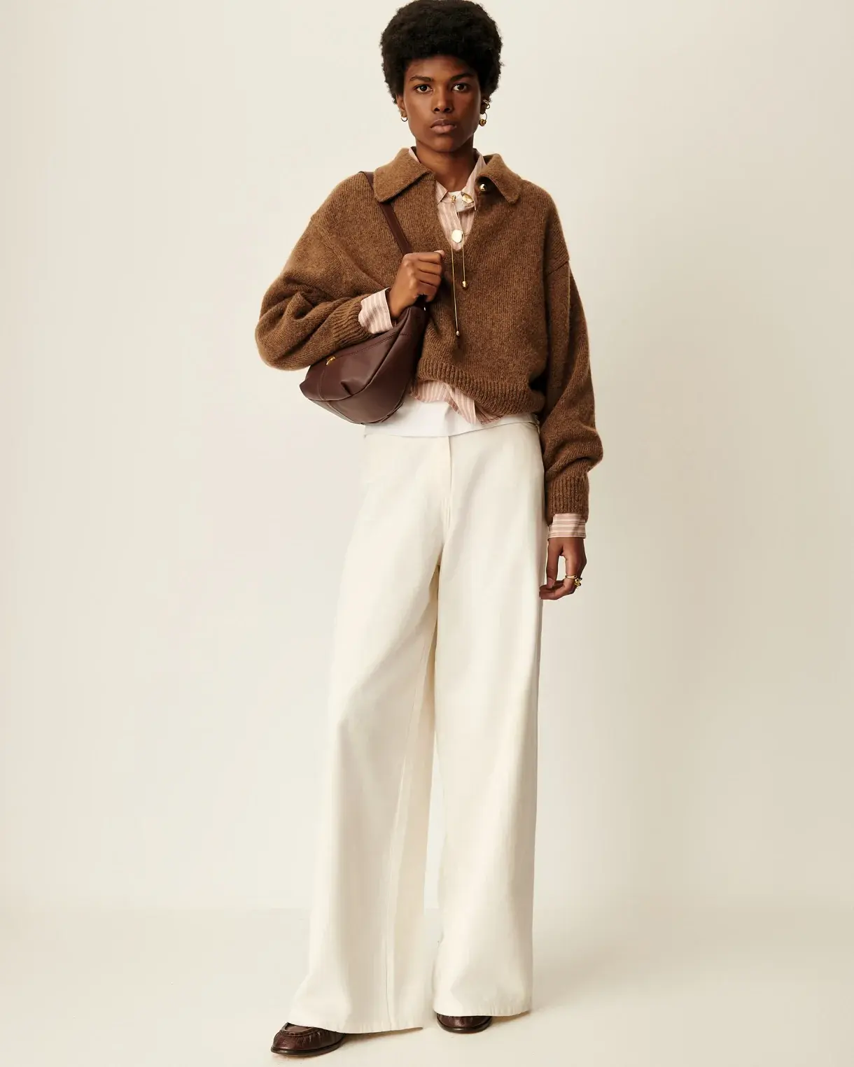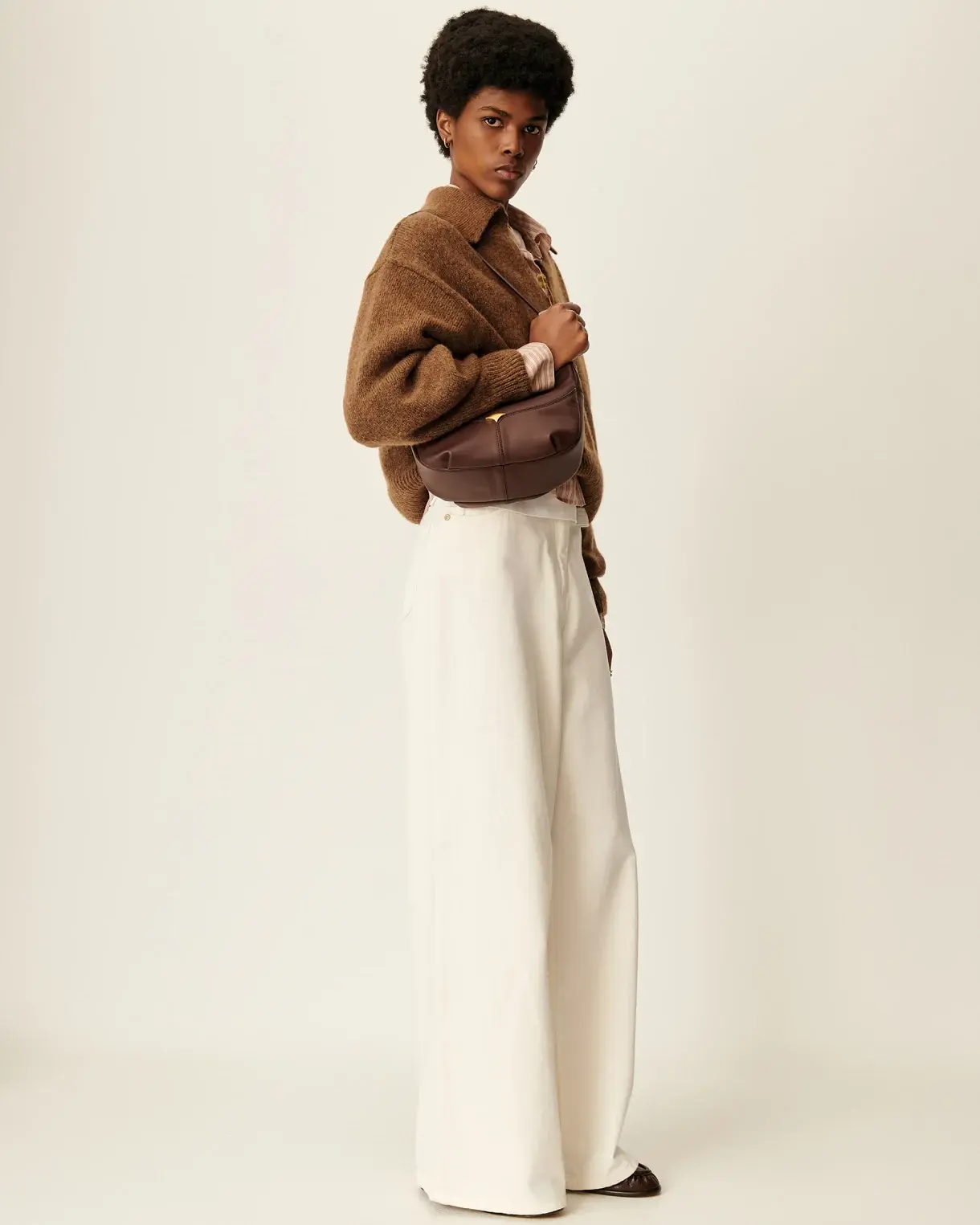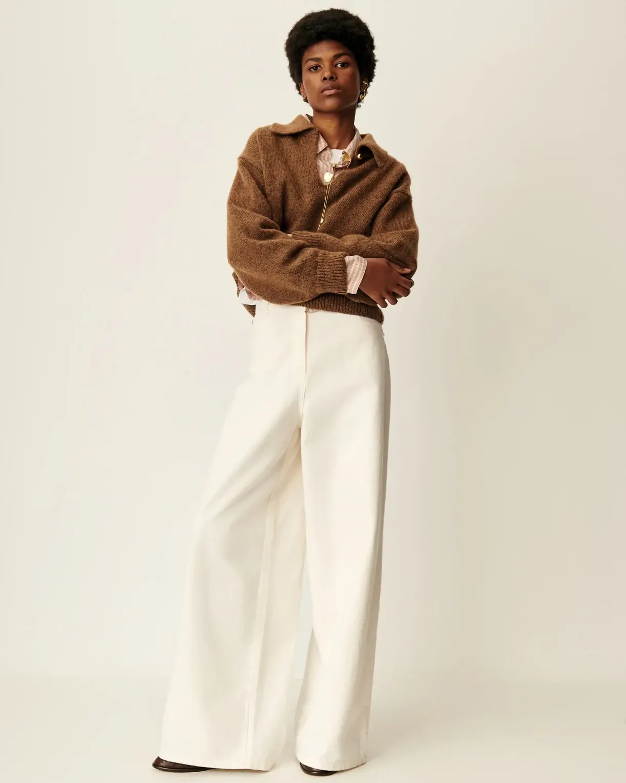 Jean ample taille très haute, jambes légèrement évasées, en gabardine teinte en plongée tissée en Espagne.