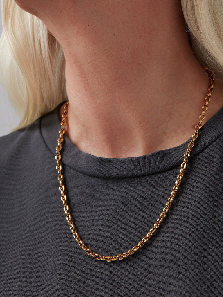 Un collier à chaîne épaisse que vous porterez sans cesse grâce à sa base en acier inoxydable résistante à l'eau.