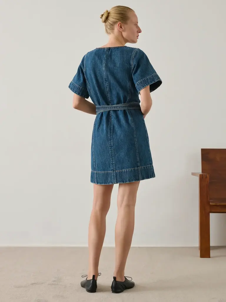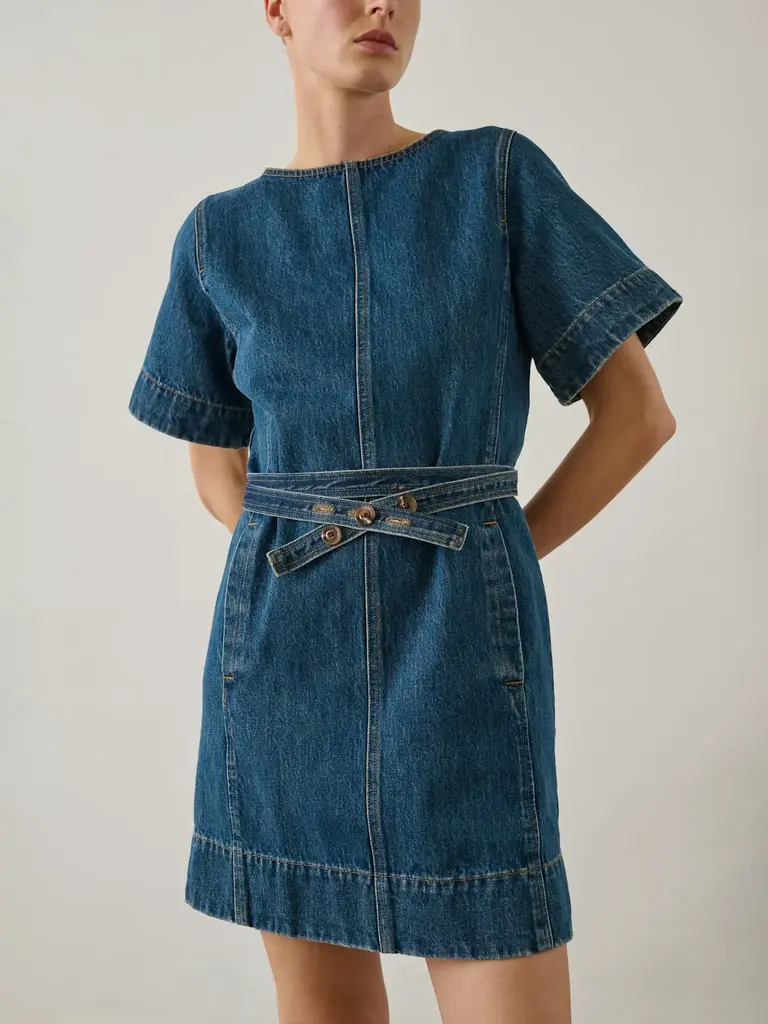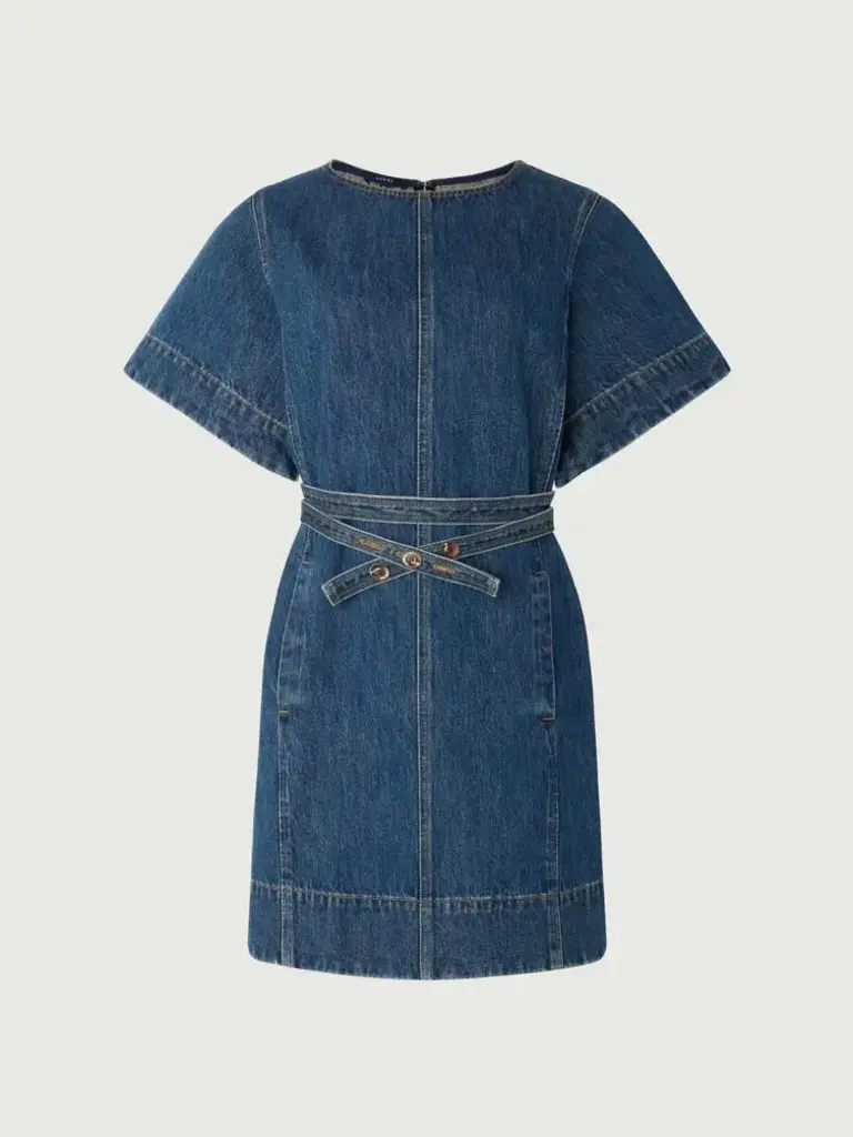 La robe Eclair de Soeur est une pièce raffinée confectionnée en toile de coton double, avec une coupe ajustée, un col rond et une longueur mi-cuisse. Conçue pour allier simplicité et sophistication, elle est dotée d'une fermeture à glissière invisible, d'une ceinture amovible et de poches latérales, idéales pour un look moderne et polyvalent.