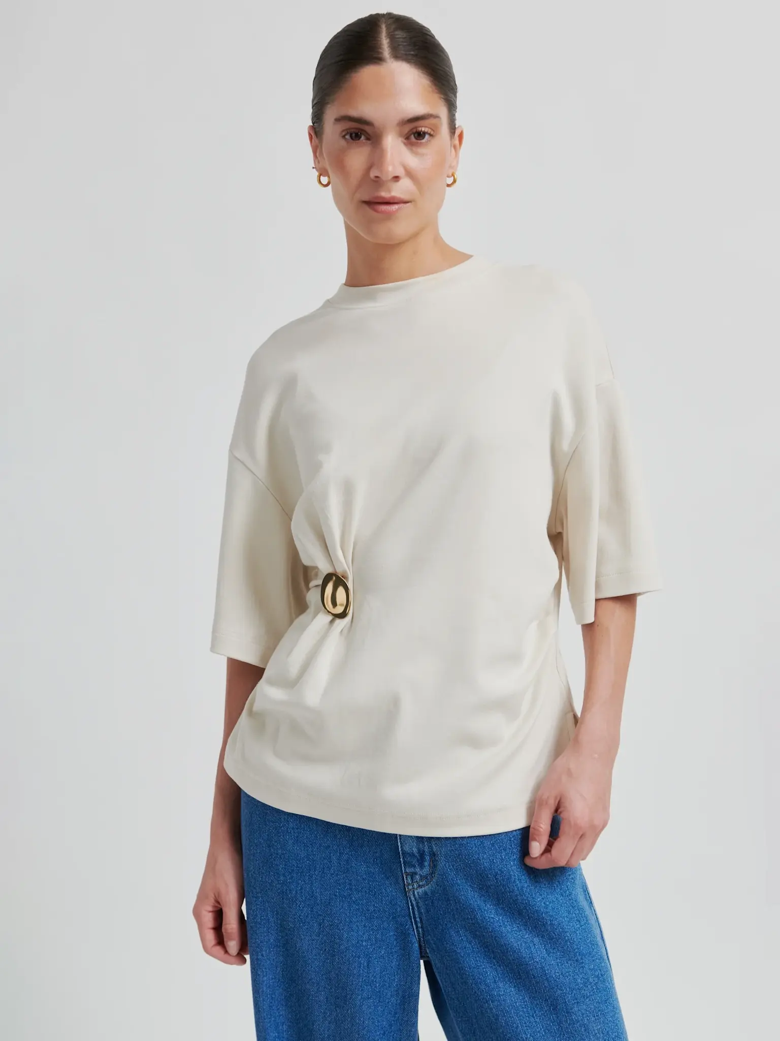 T-shirt crème avec broche de la marque Second Female.