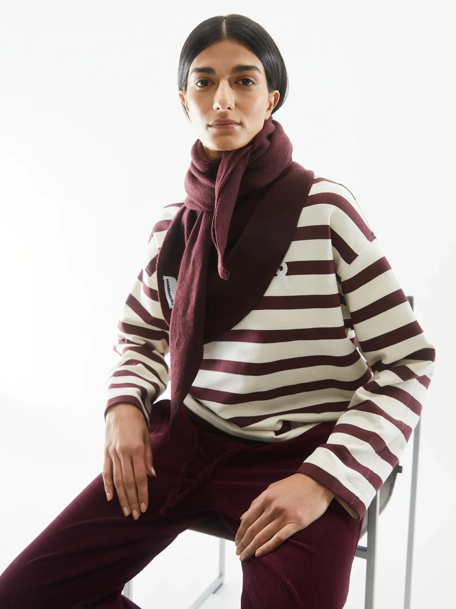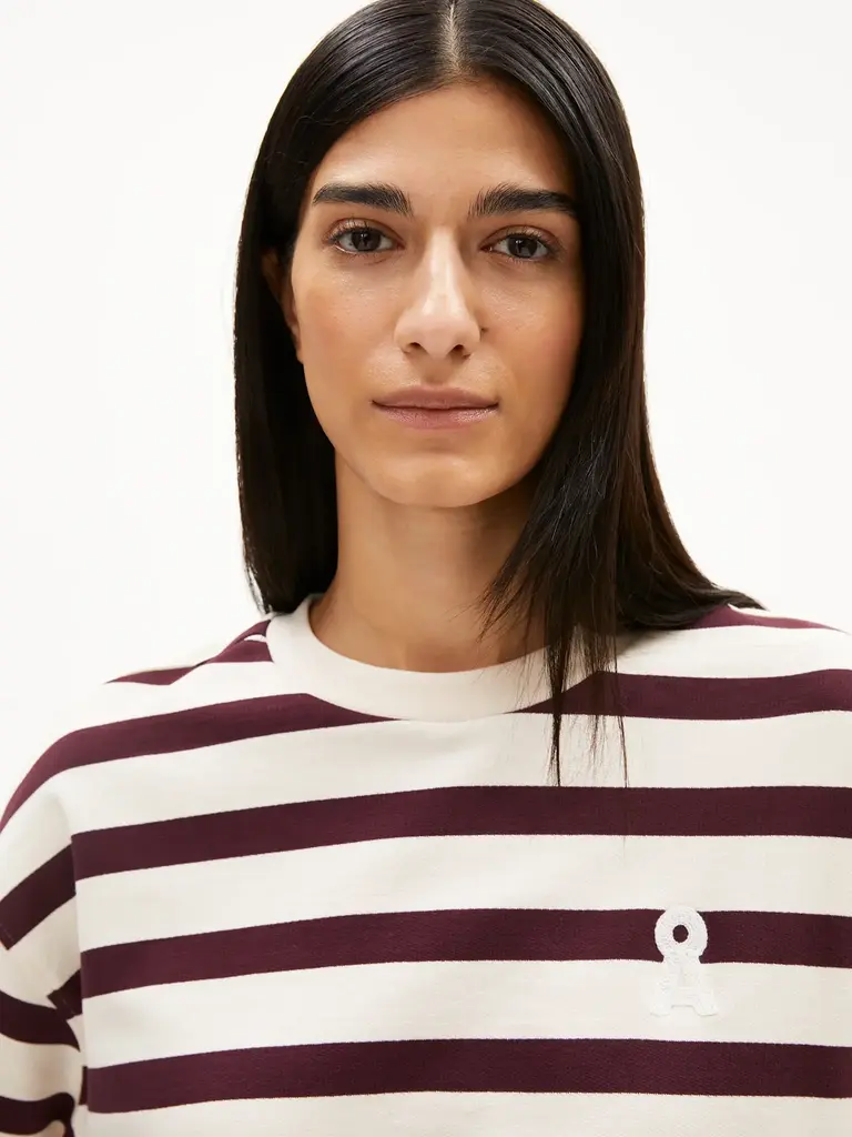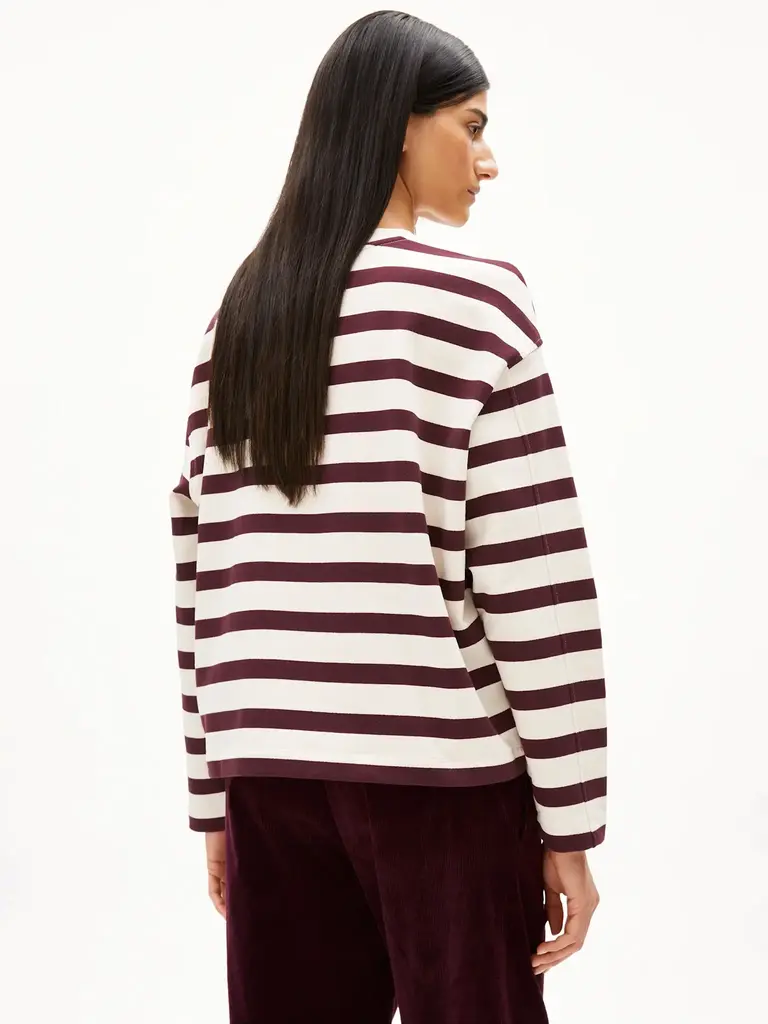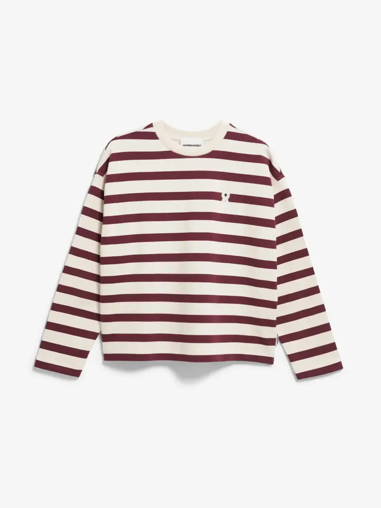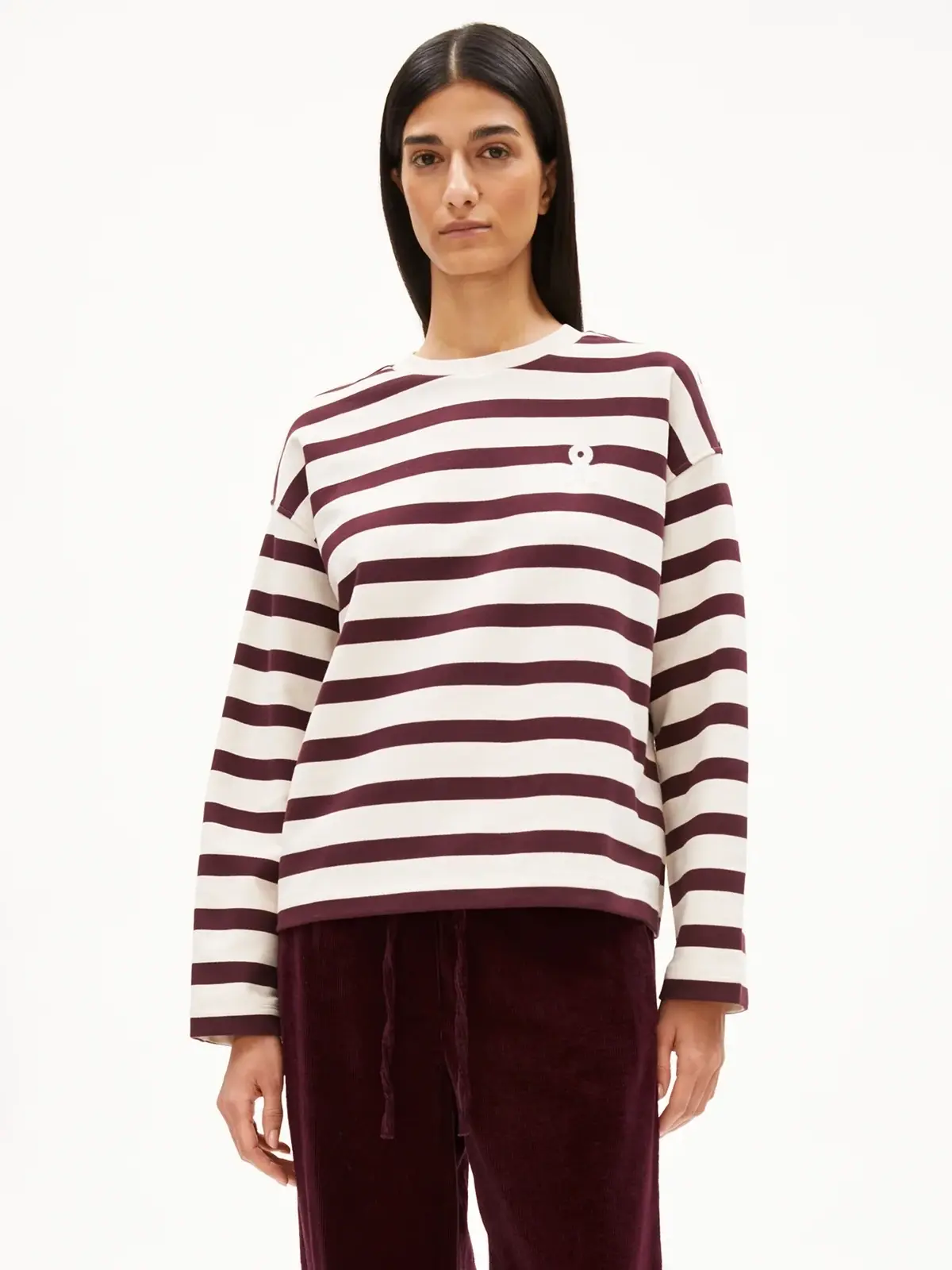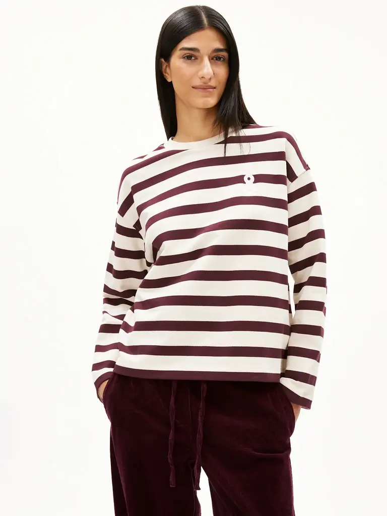 Sweatshirt rayé crème et bordeaux de la marque Armed Angels.