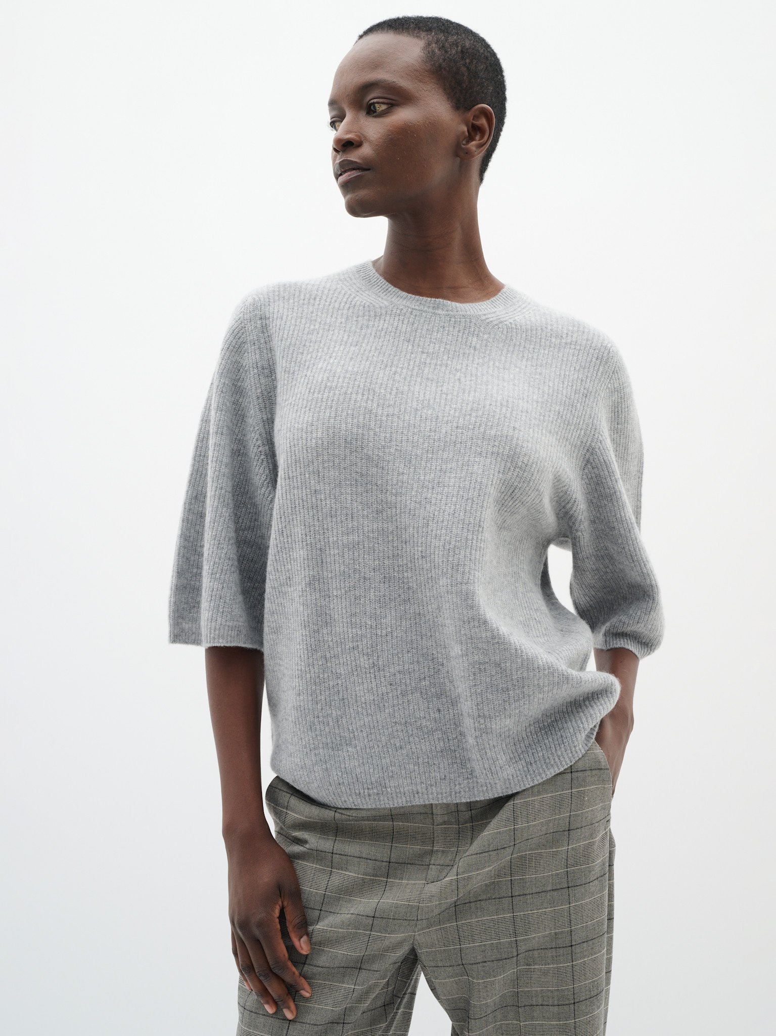 T-shirt oversize gris mélange en rib côtelé de la marque InWear.