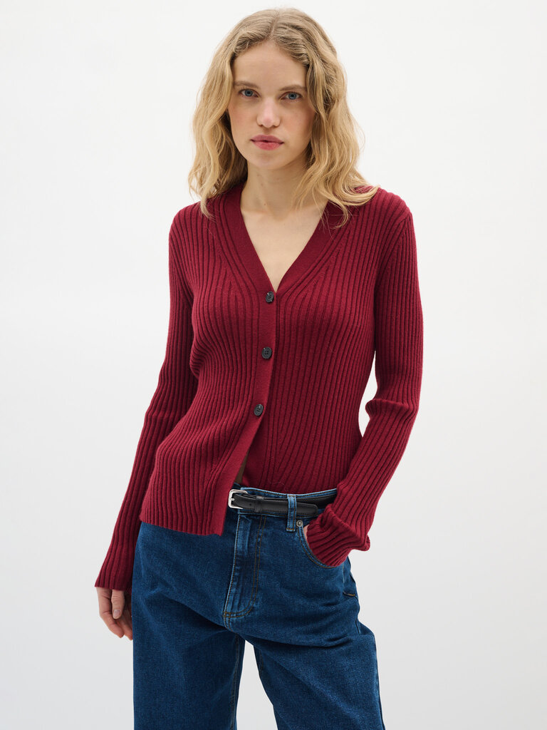 Cardigan en rib côtelé cabernet de la marque InWear.