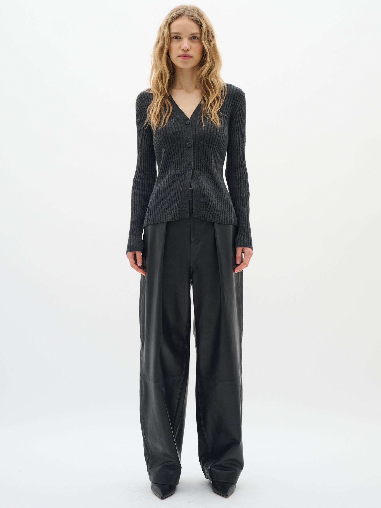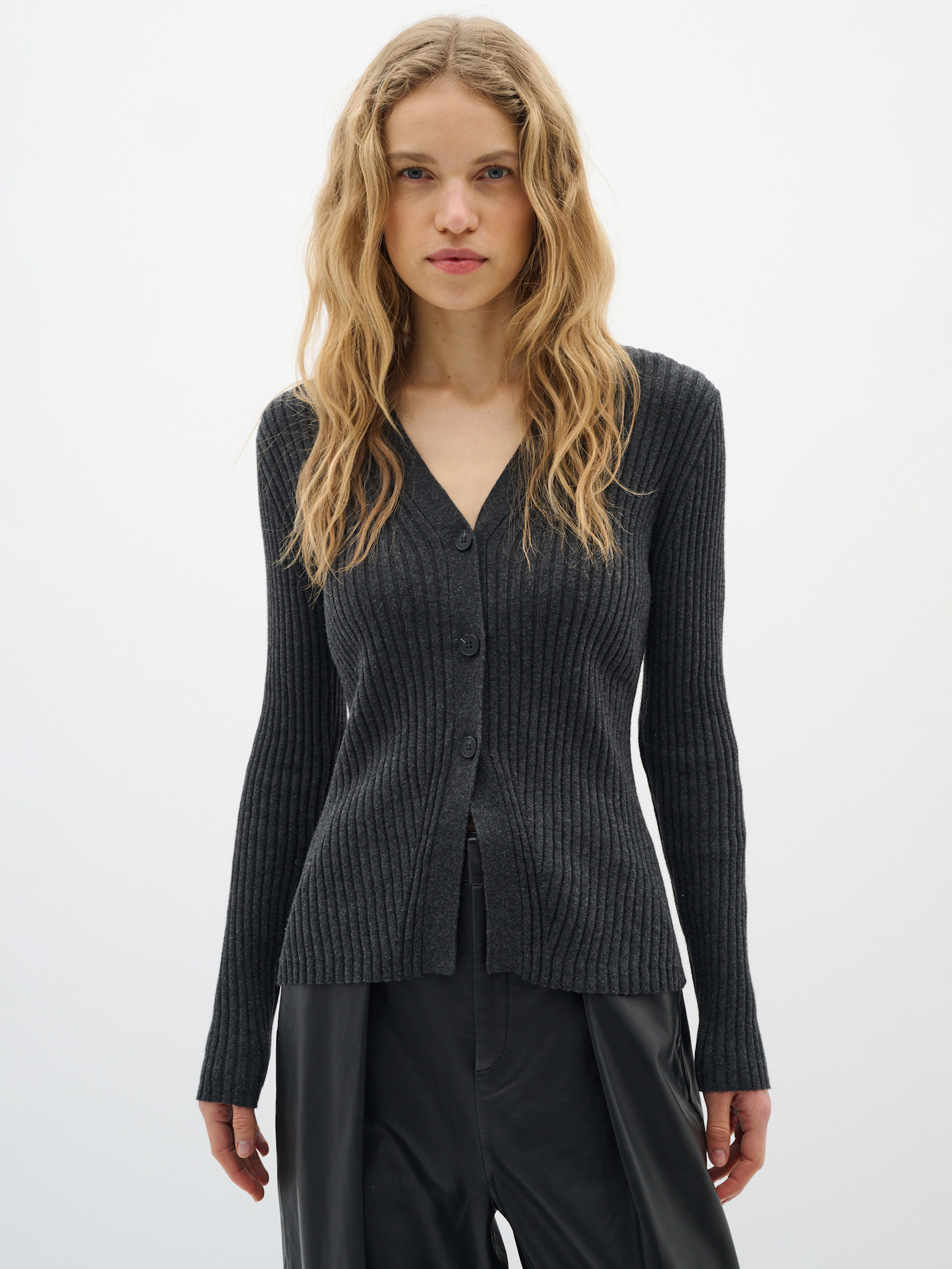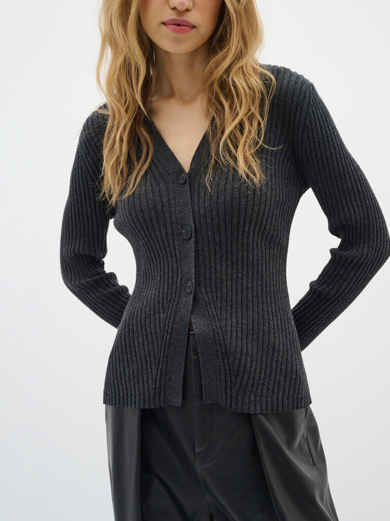 Cardigan en rib côtelé gris melange de la marque InWear.