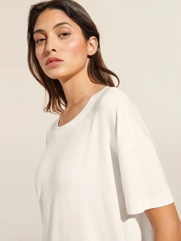 Tous les jours, de toutes les façons. Fabriqué à partir de TENCEL™ Modal et d'une touche de Spandex, ce tissu super doux est vérifié par OEKO-TEX® Standard 100, ce qui signifie qu'il est teint avec des colorants sûrs et non toxiques, c'est-à-dire qu'il a été fabriqué sans produits chimiques nocifs. Le t-shirt Gisele se porte à merveille en combinaison avec le short Gisele.