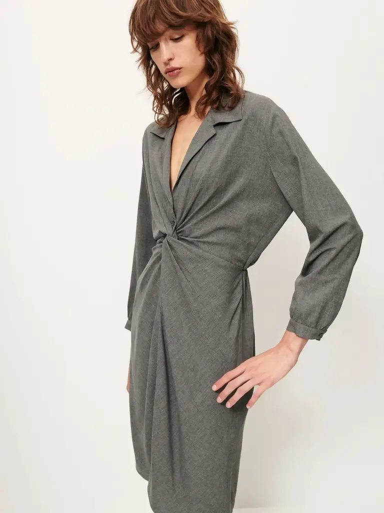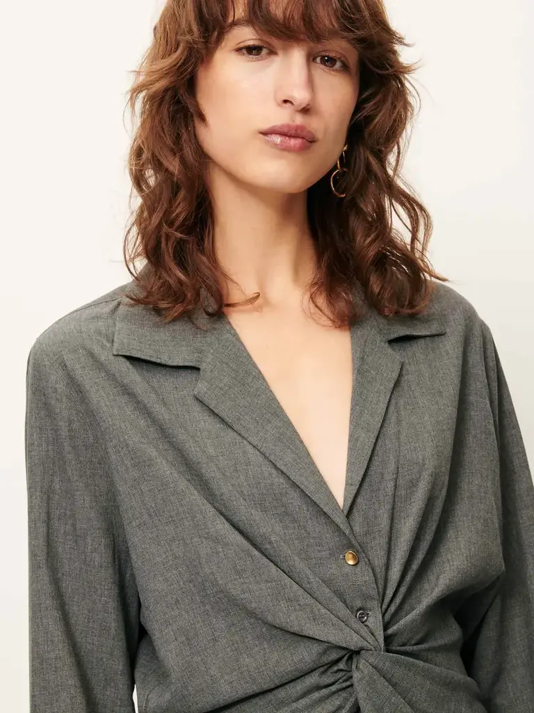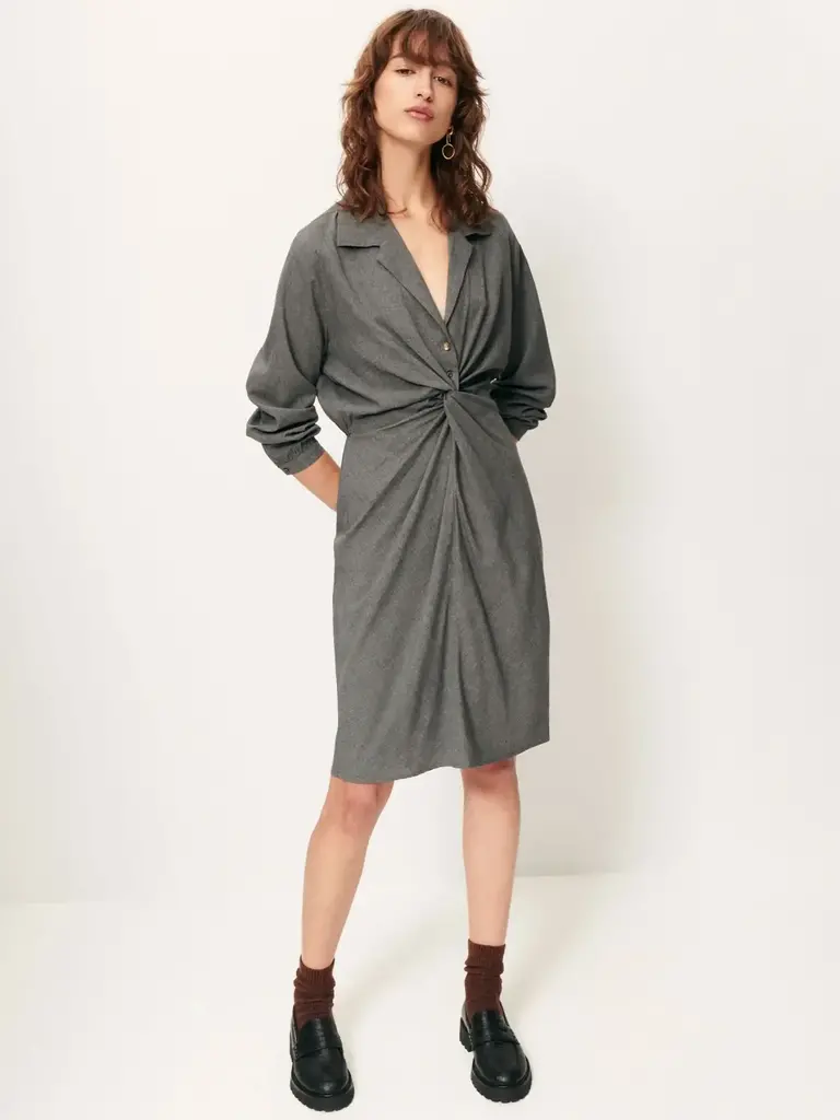 Robe chemisier mi-longue, grise, de la marque Sessùn.