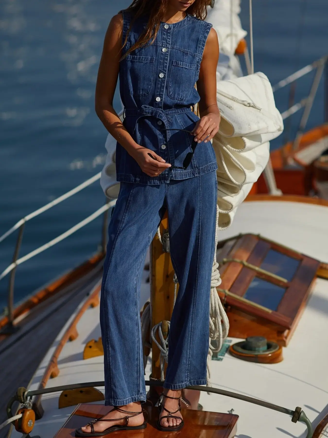 Pantalon en denim tencel souple bleu foncé de la marque Bella Dahl.