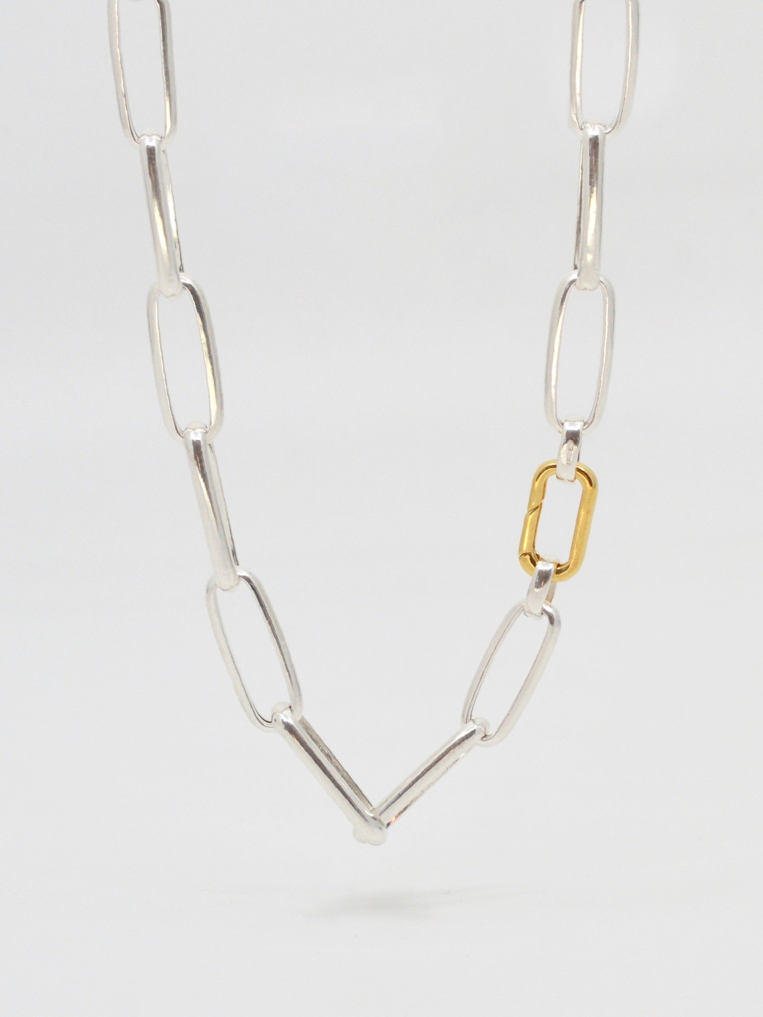 La Siena est une chaîne à larges maillons en argent avec une fermeture en or vermeil 24k.