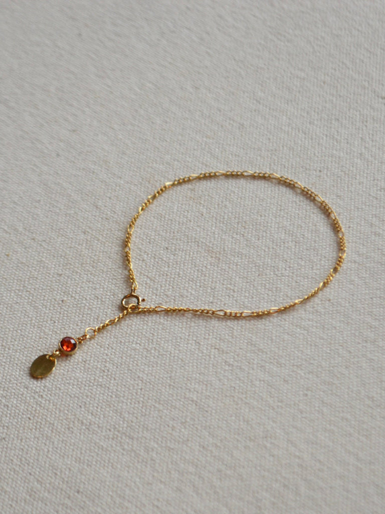 Composé d’une fine chaîne 14K remplie d'or et d’une délicate pierre semi-précieuse crystal, le bracelet Tavira est d’une essence féminine et mystique.