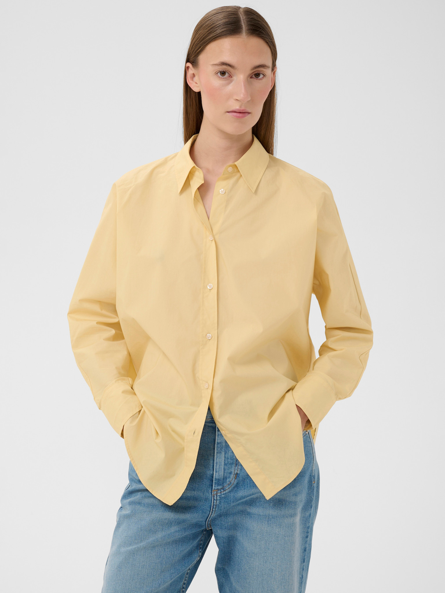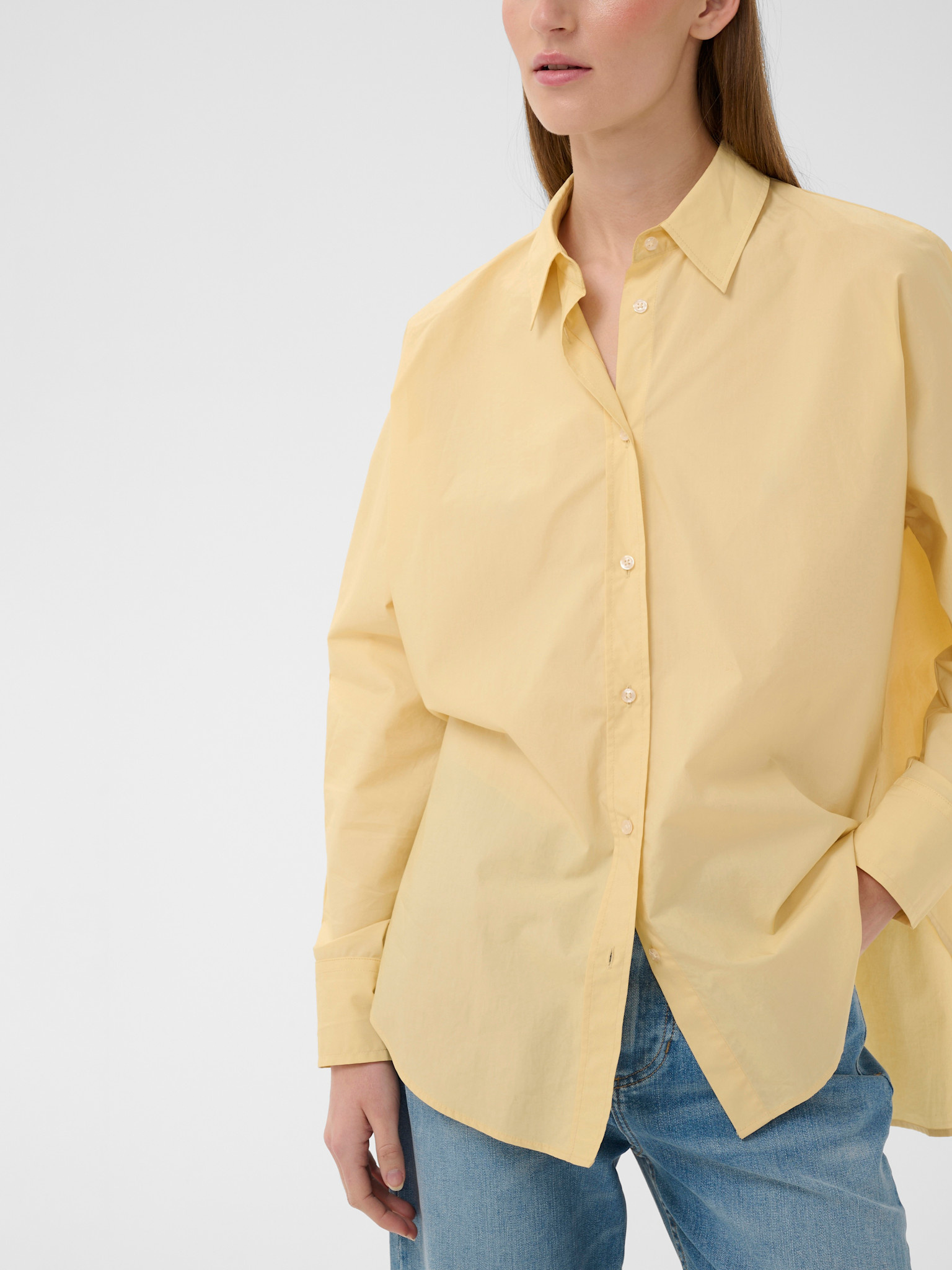 Chemise basique longue et ample en poplin jaune pâle de la marque InWear.