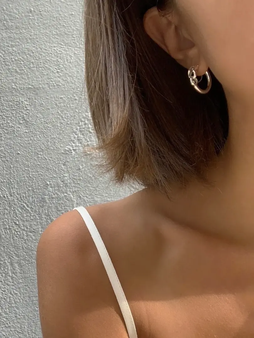 Les boucles d'oreilles en argent Cecconi sont d'une élégance éternelle. Nous aimons particulièrement ce style de boucles d'oreilles créoles à cercles entrelacés.