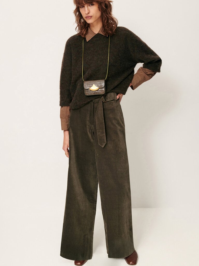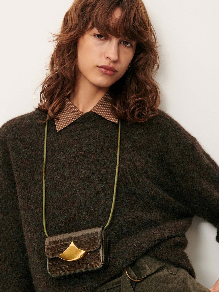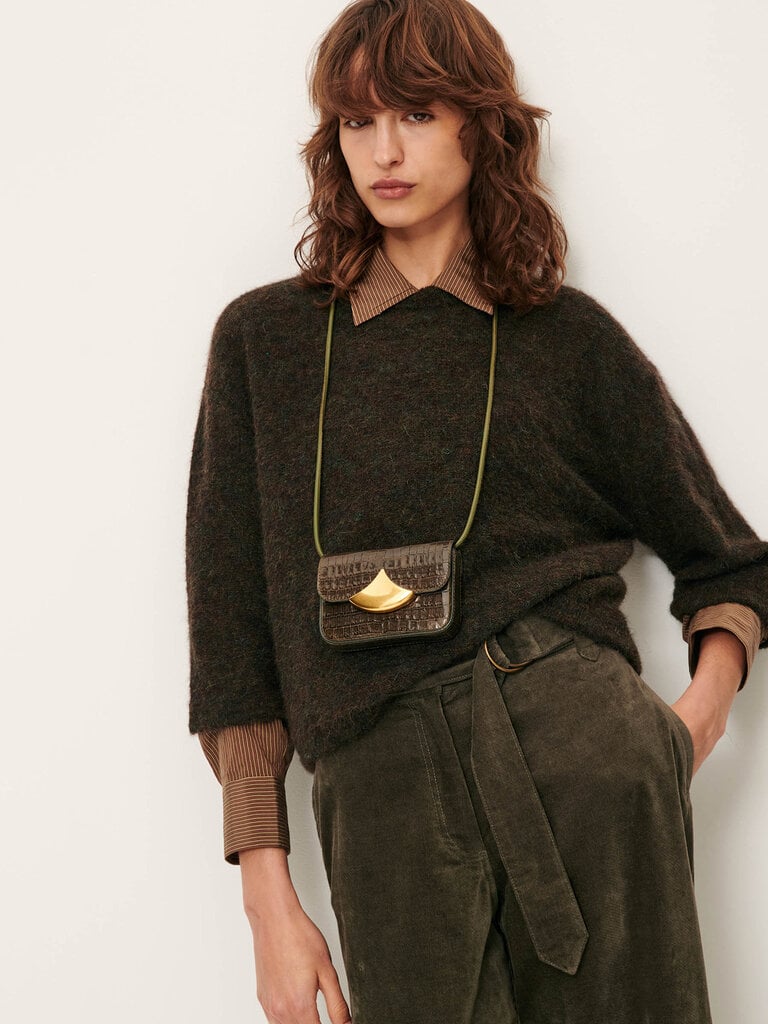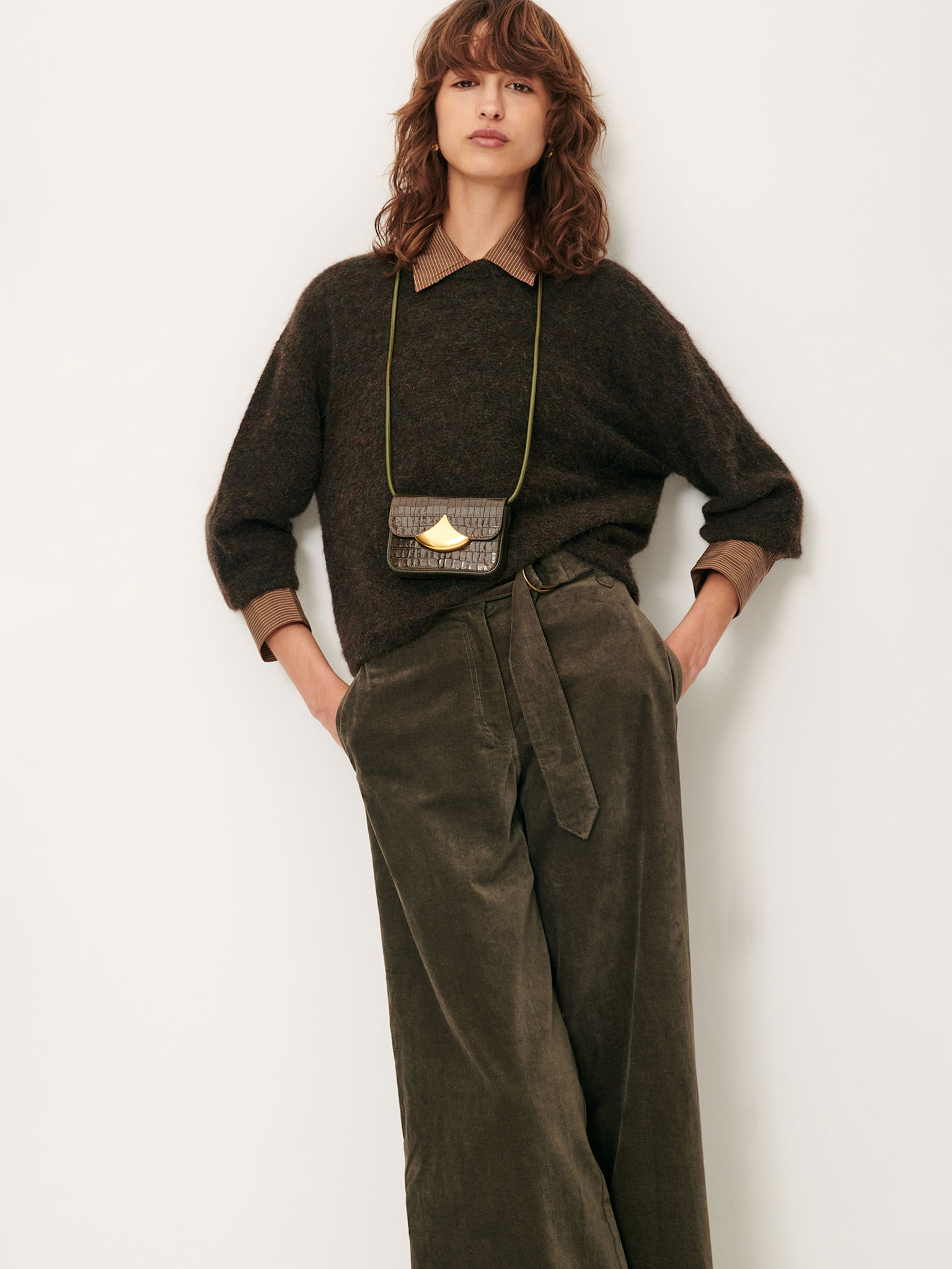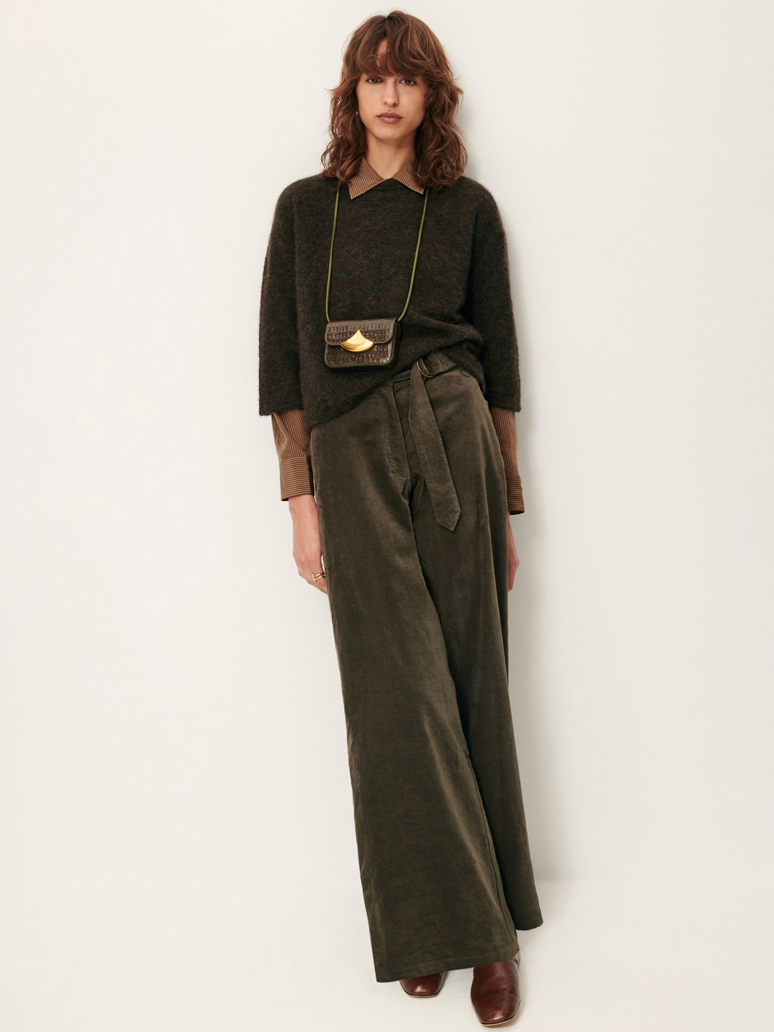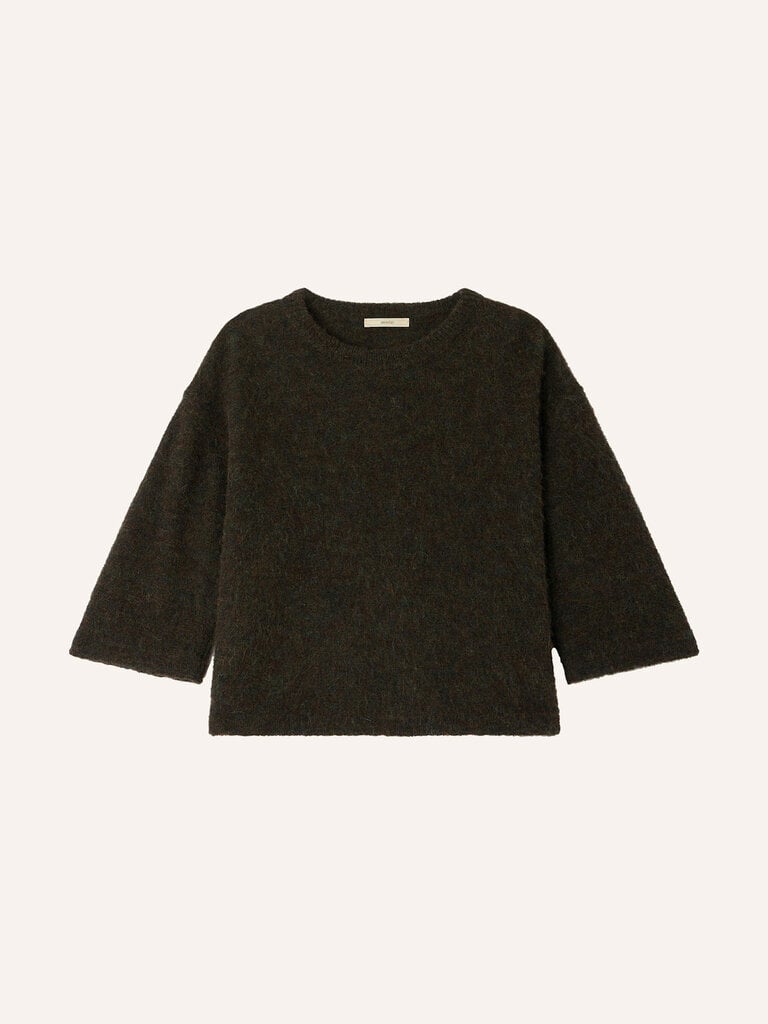 Le pull Kunlun de la marque Sessùn est un modèle à coupe droite et à encolure ronde et ample. Ces manches coupé droites lui donnent un style unique qui se jumelle bien avec une chemise porté en-dessous, ou bien une paire de jeans pour un look plus décontracté.Celui-ci est fait de laine d'alpaga, lui conférant une authentique douceur.
