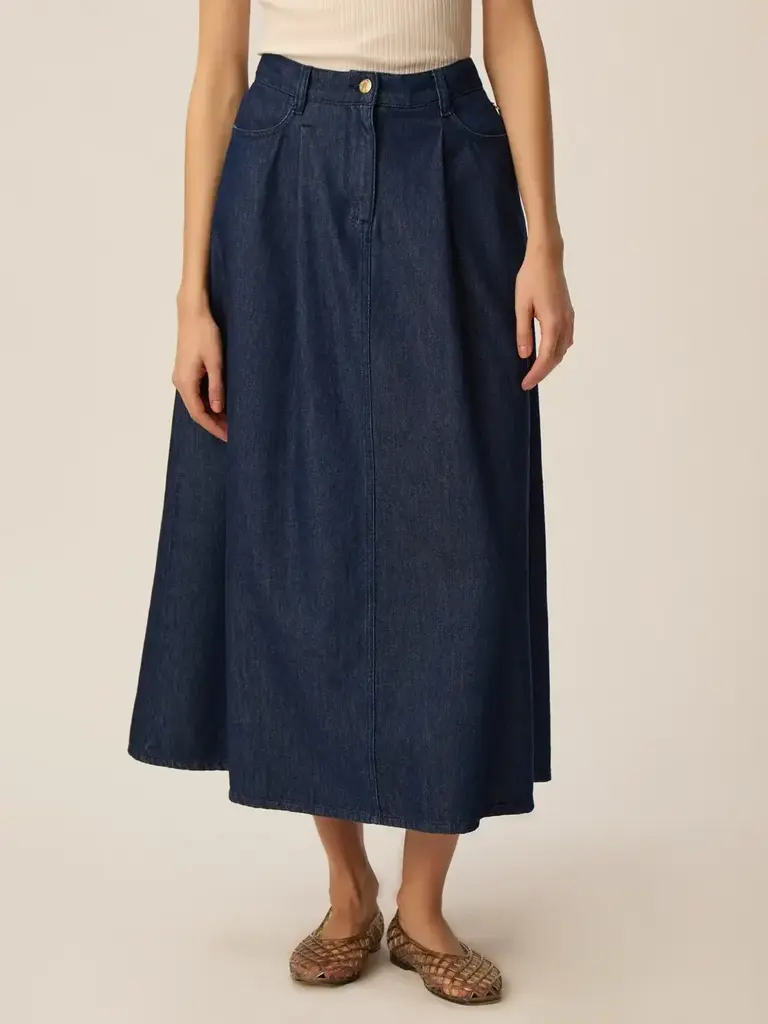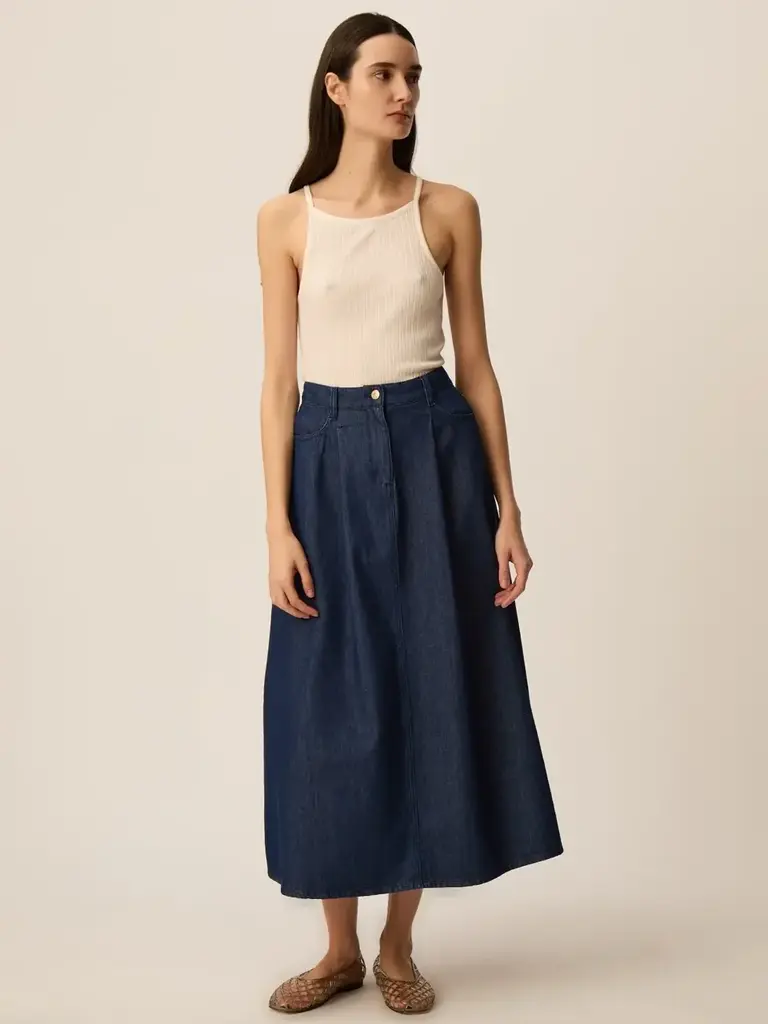 • Jupe mi-longue en jean 100 % coton