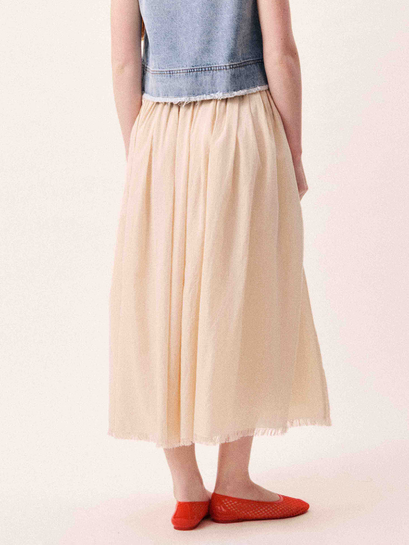 Jupe à plis crème rosé de la marque Frnch.
