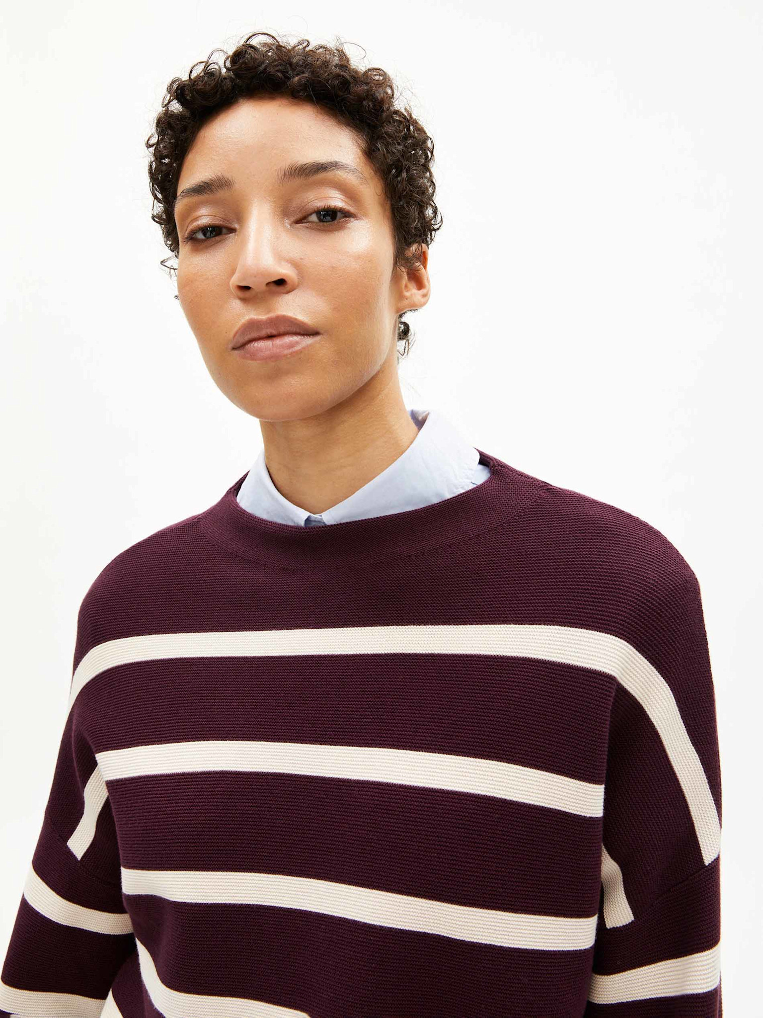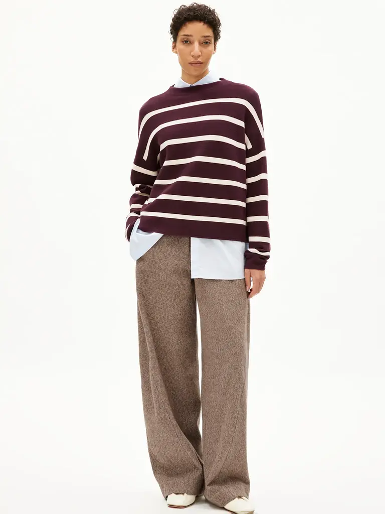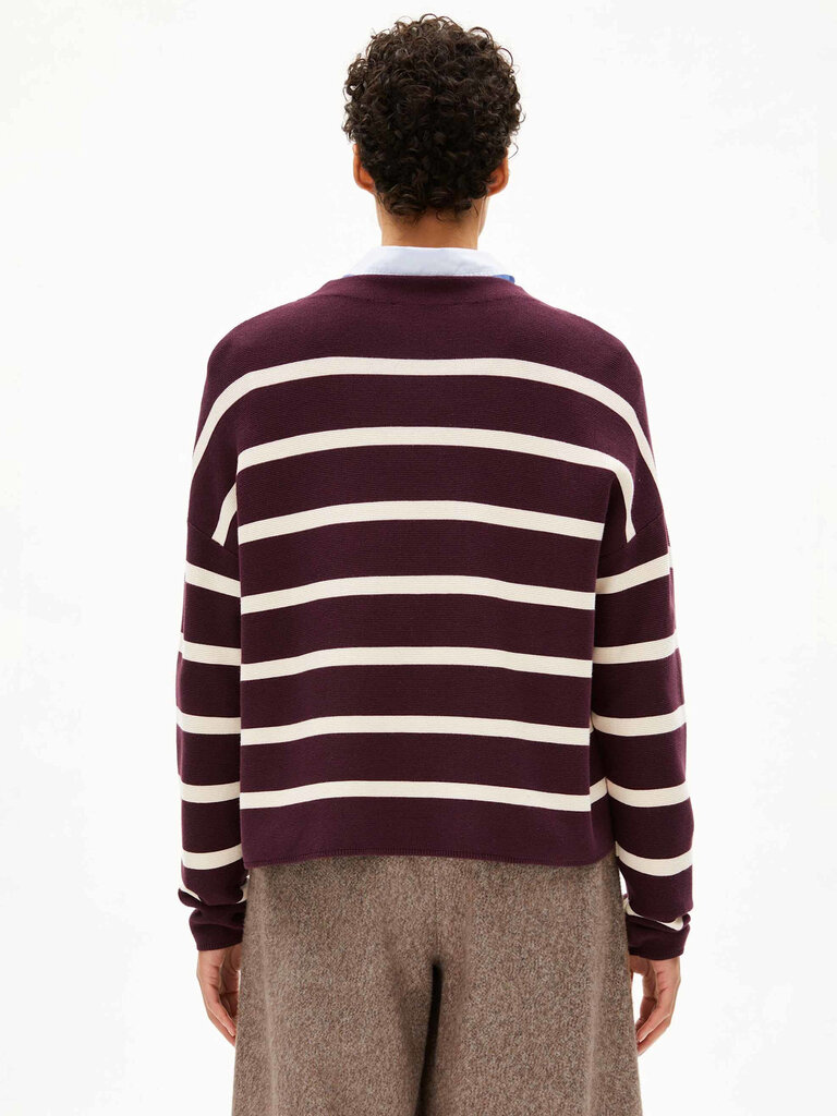 Pull de coton rayé bordeaux de la marque Armed Angels.