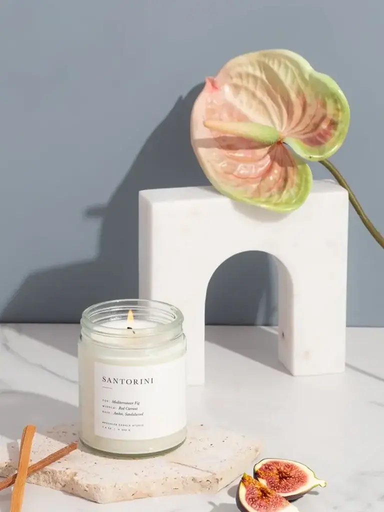 Ce parfum rappelle les arômes fruités et terreux des abondants figuiers de Santorin et des groseilles indigènes luxuriantes. Les notes boisées de santal et d'ambre forment un fond riche et chaud qui vous fera rêver des îles grecques.