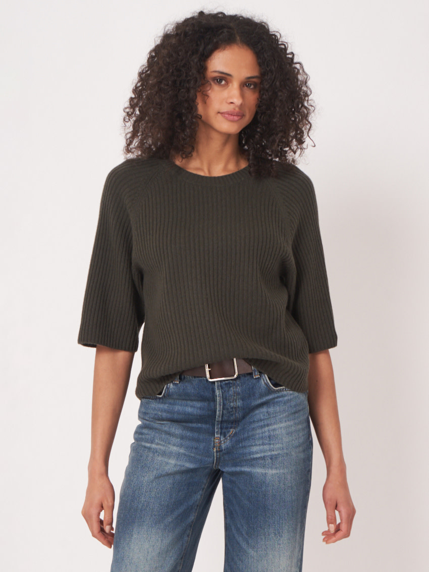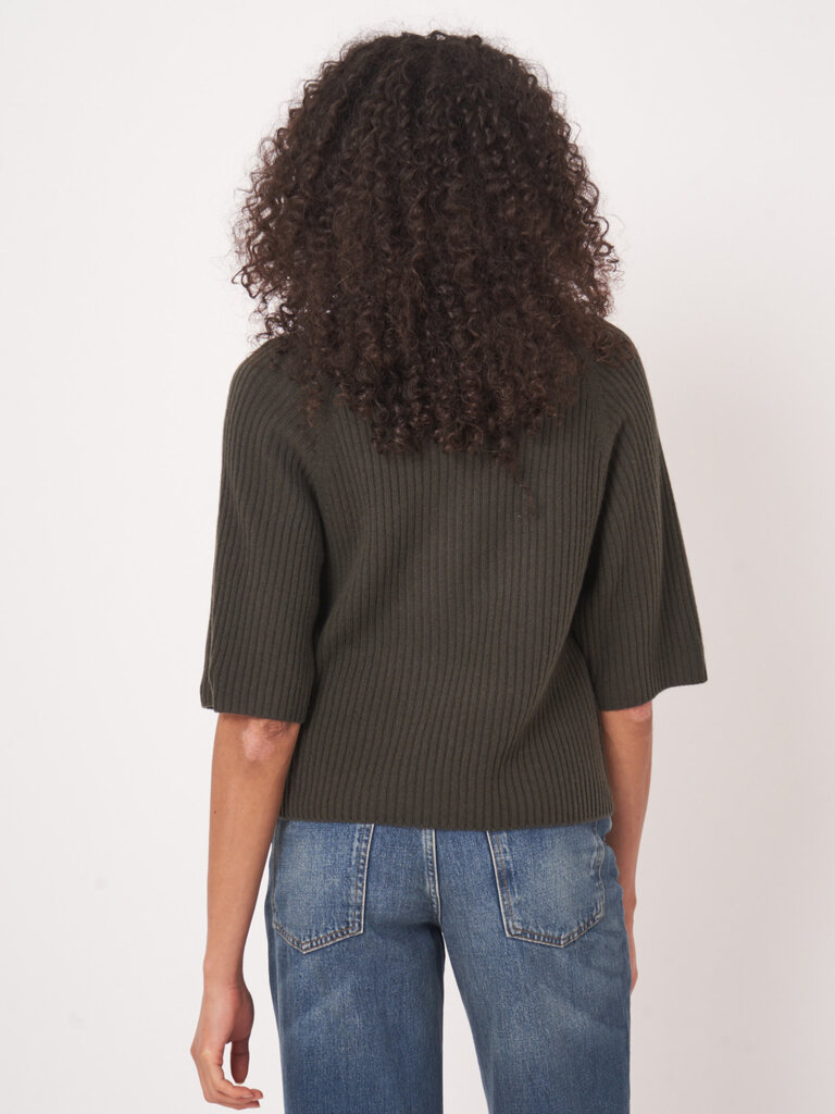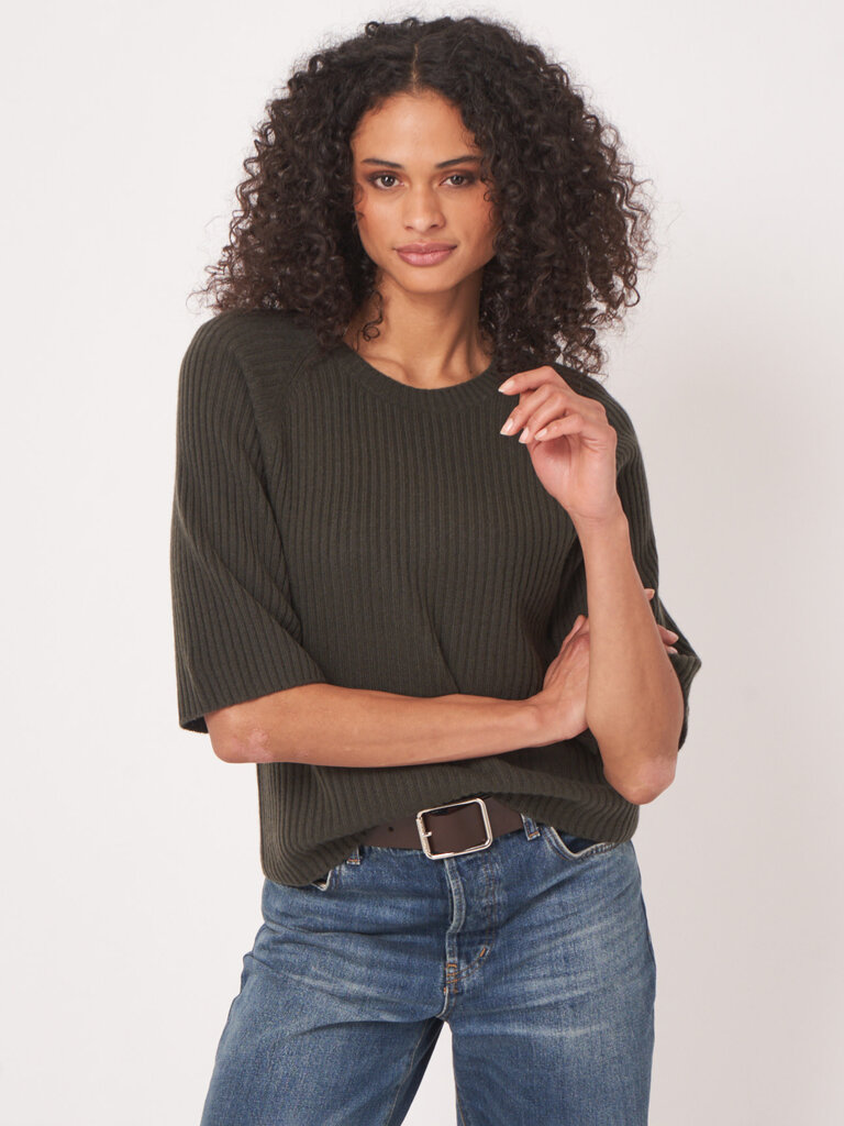 Le pull en cachemire de REPEAT a un style décontracté et pourtant très spéciale en son genre grâce à ses mailles côtelées, de même qu'il en est pour son col rond et ses ourlets. Nous pouvons ressentir le poids du pull, ce qui le rend tout de même confortable à porté. Il n'y a rien de mieux que ce vêtement pour l'agencer parfaitement à n'importe quel outfit.