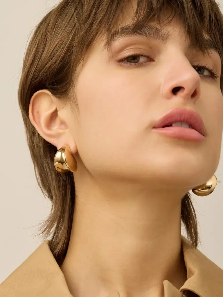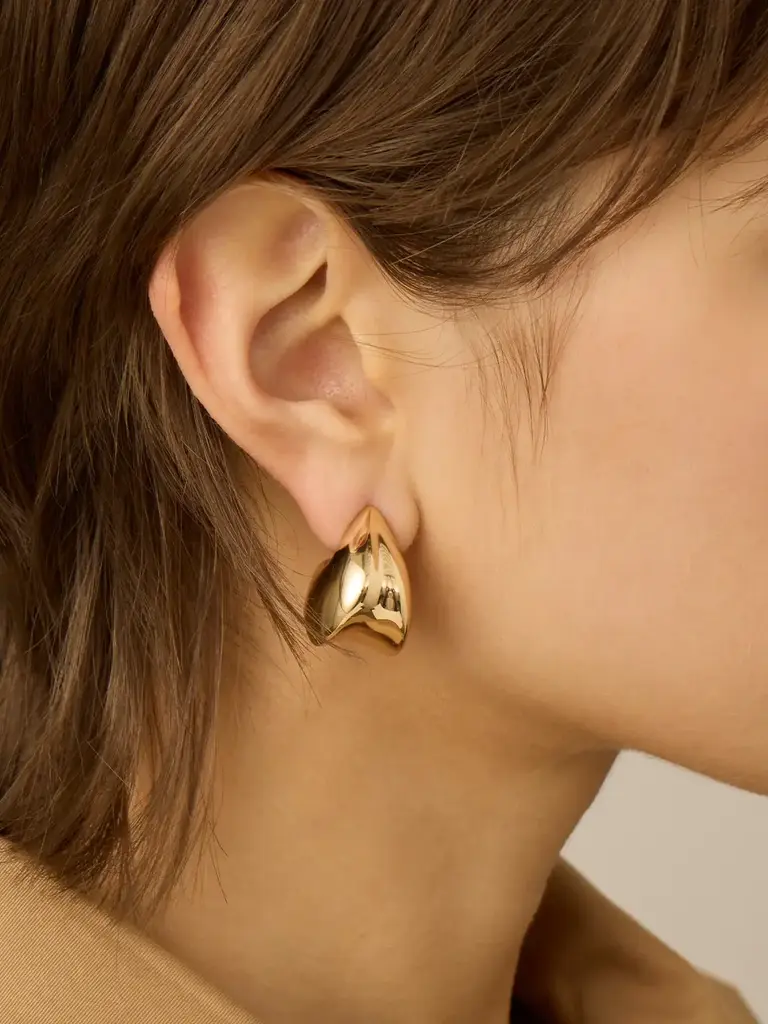 La conception creuse des boucles d'oreilles Paige est une prouesse technique qui les rend légères. Pour plus de maintien, elles sont dotées d'un support plus large, mais si vous avez besoin d'encore plus de maintien, essayez nos populaires Lobe Lifters. Finition en or hautement poli.