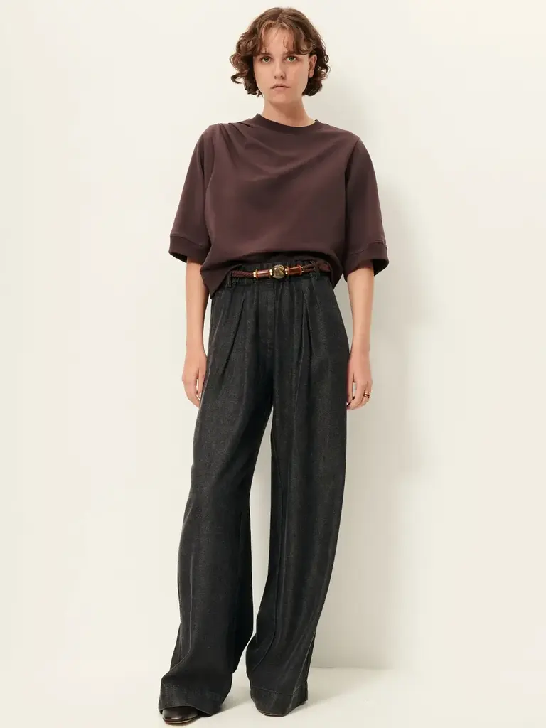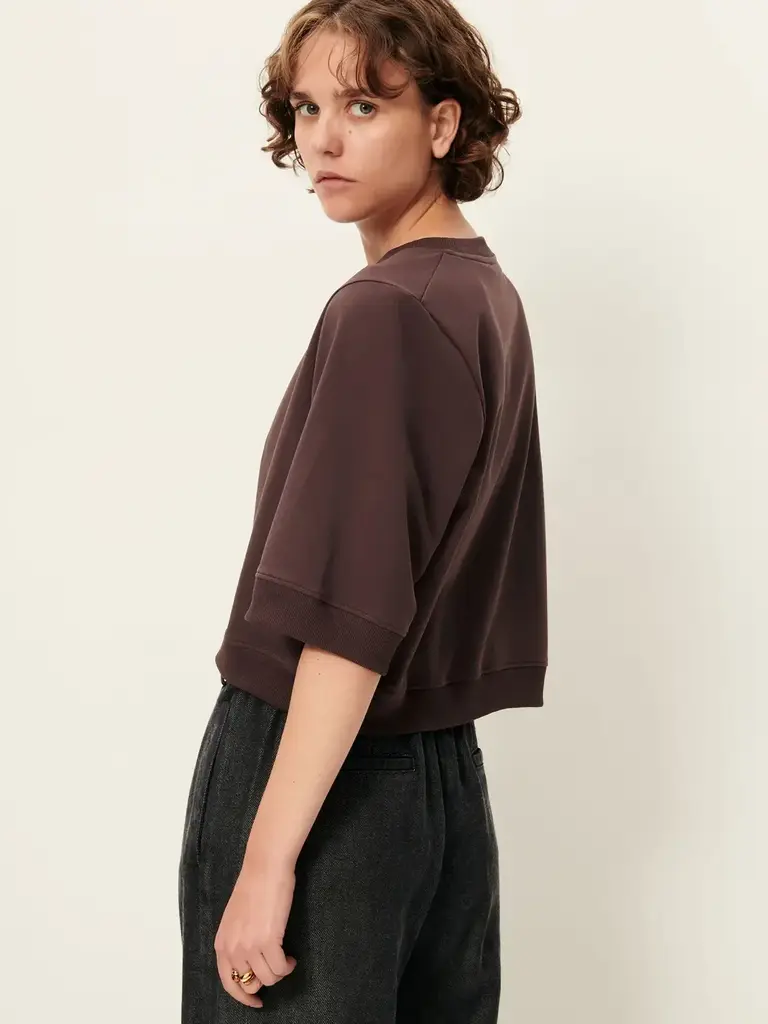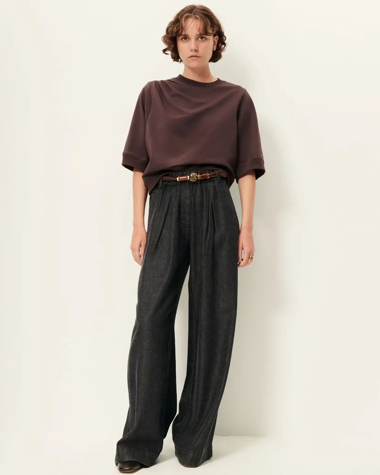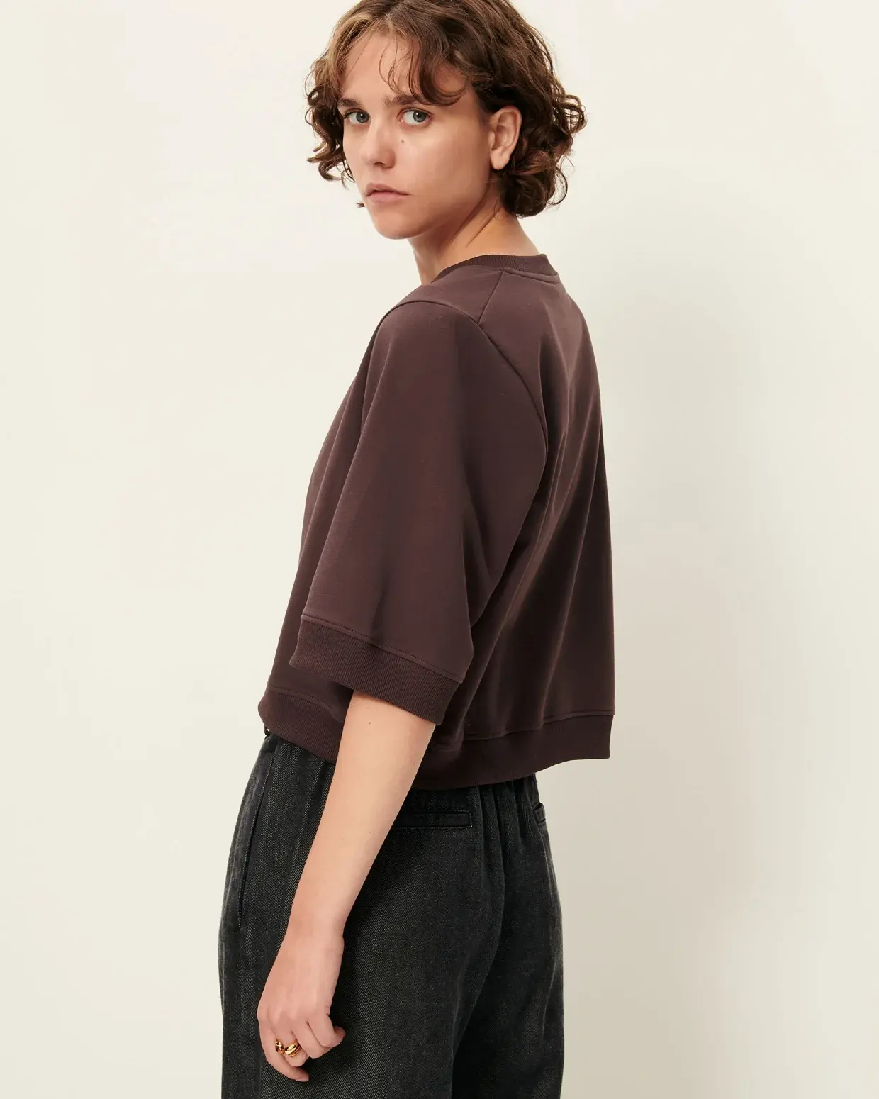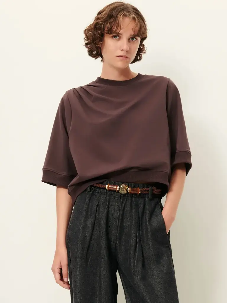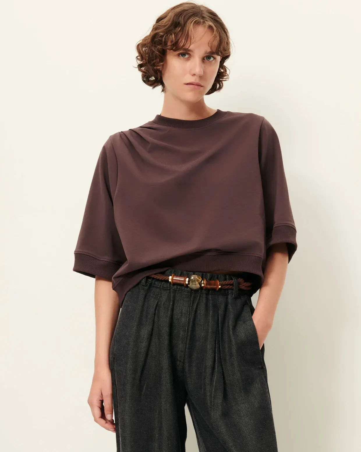 Sweat brun à plis en molleton léger de la marque Sessùn.