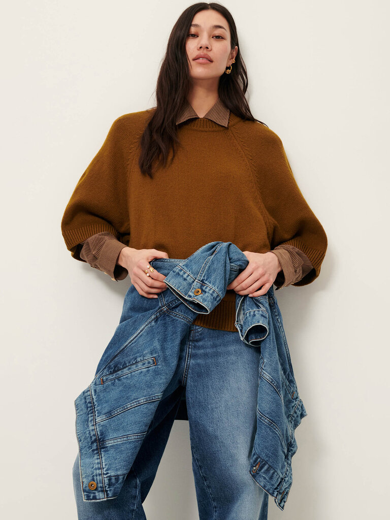 Le pull Renzo de la marque Sessùn est un modèle ayant une coupe oversize, comportant aussi des manches 3/4 raglans en couture diagonale. Son style s'adapte facilement è votre garde-robe. Le tout est composé en laine mérinos, naturellement douce, et en cachemire