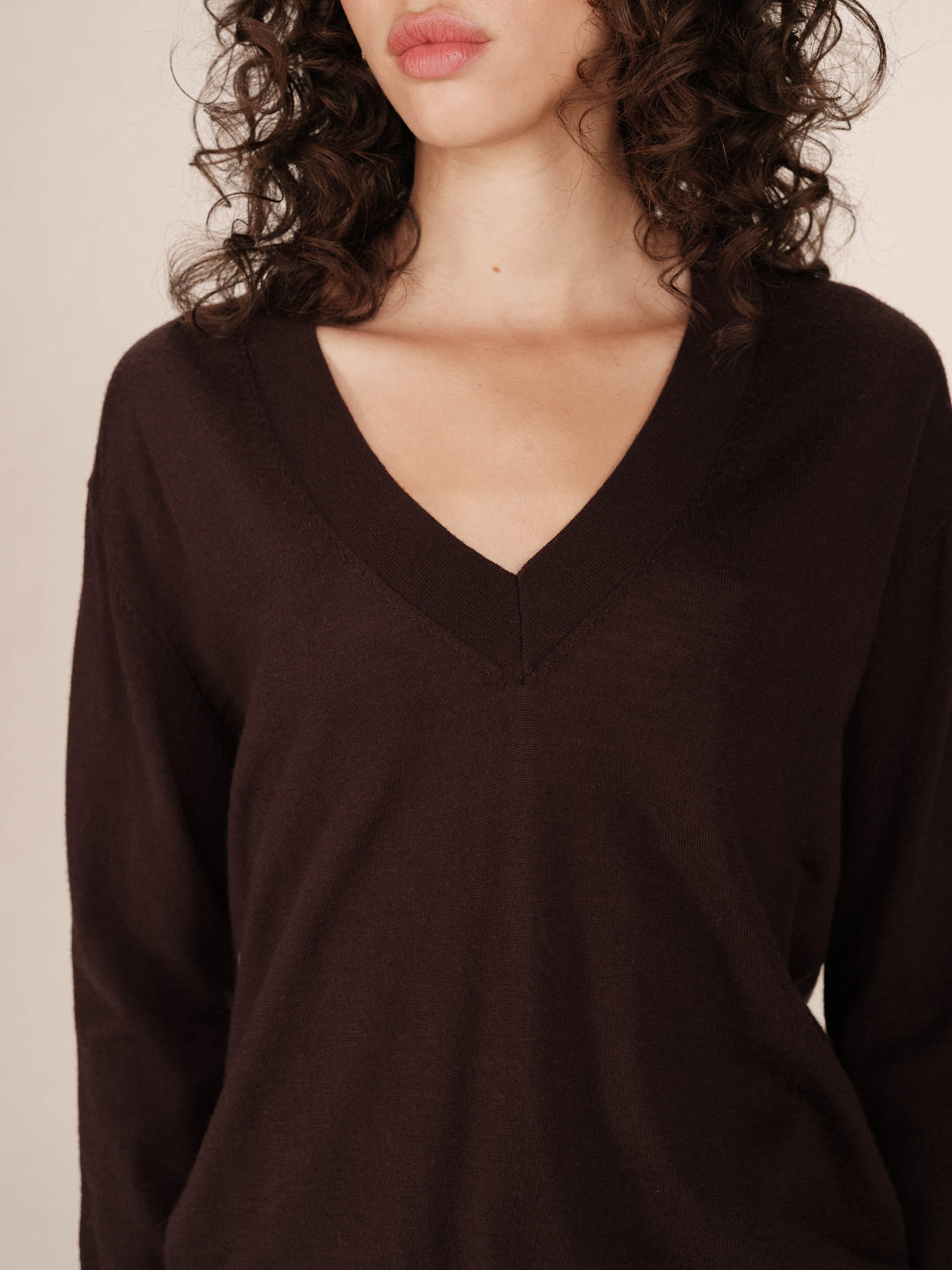 Chandail col en V en laine très fine de la marque Grace & Mila.