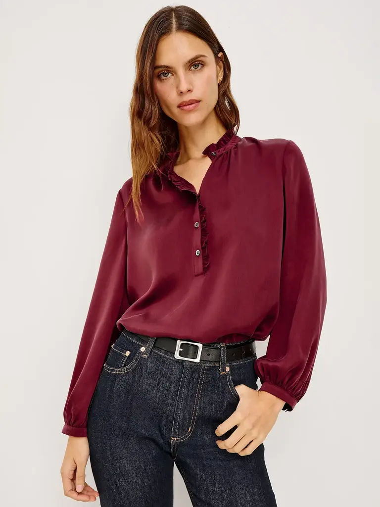 Blouse soyeuse bordeaux franboise de la marque Rails.