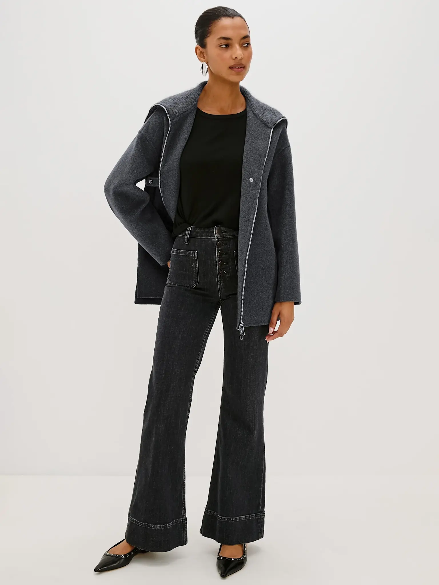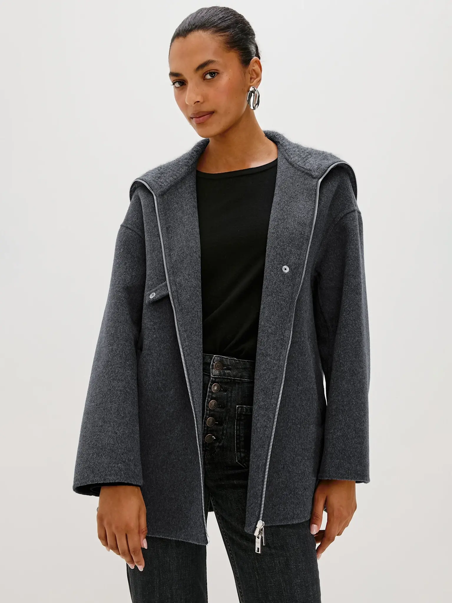 Manteau court en laine charcoal de la marque Rails.