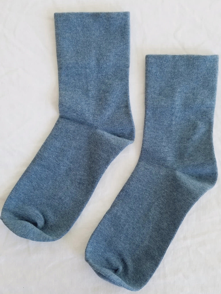 Petites chaussettes couleur bleu denim de la marque Le Bon Shoppe.