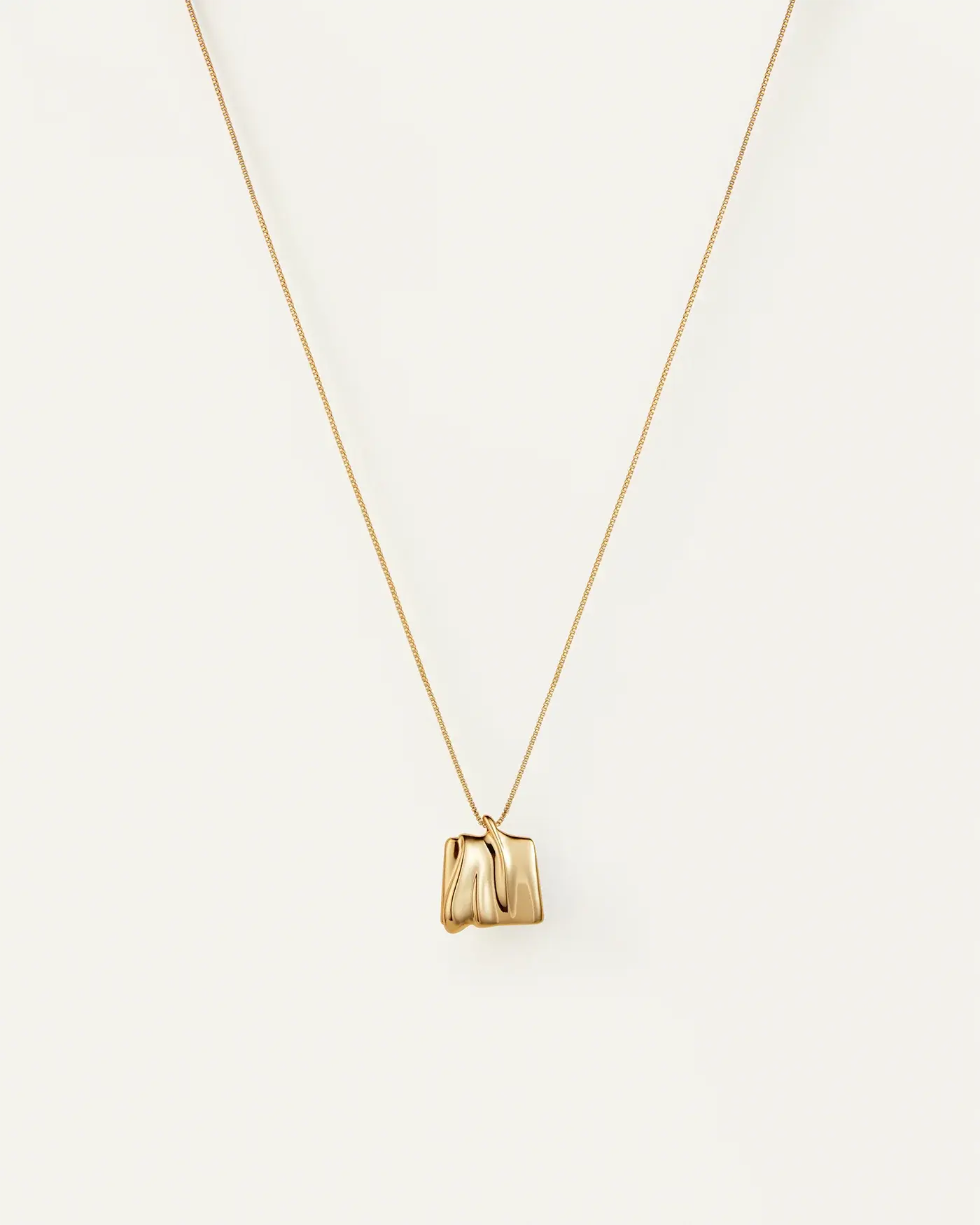 Reflétant une dune de sable façonnée par les vents naturels, ce pendentif carré organique glisse le long d'une délicate chaîne maille forçat en or. Ce modèle comprend un anneau de raccourcissement, ce qui permet de l'ajuster facilement et de le porter à 50 cm ou 56 cm. Finition en or 14 carats hautement poli.