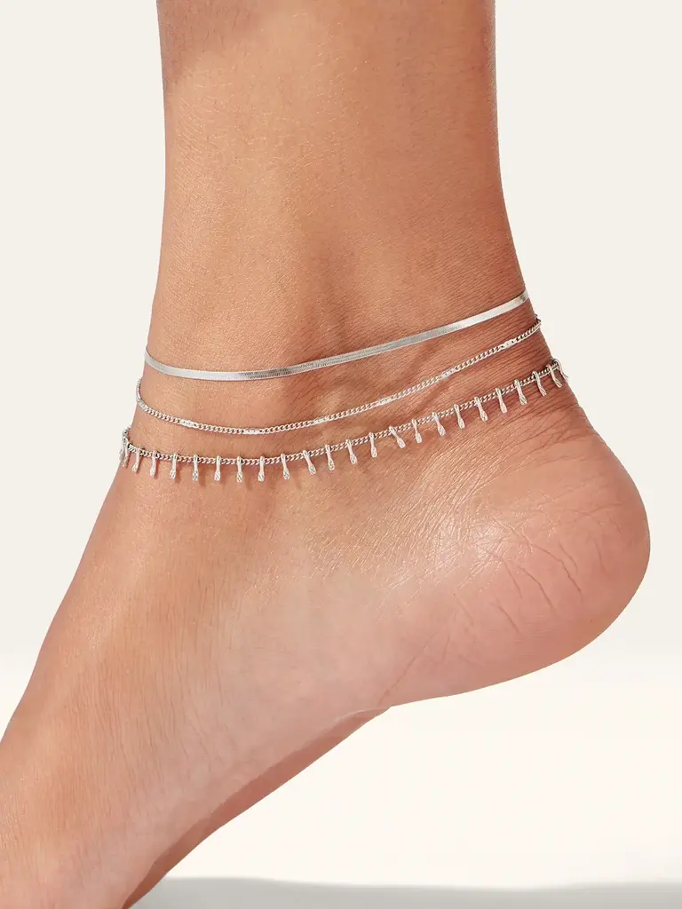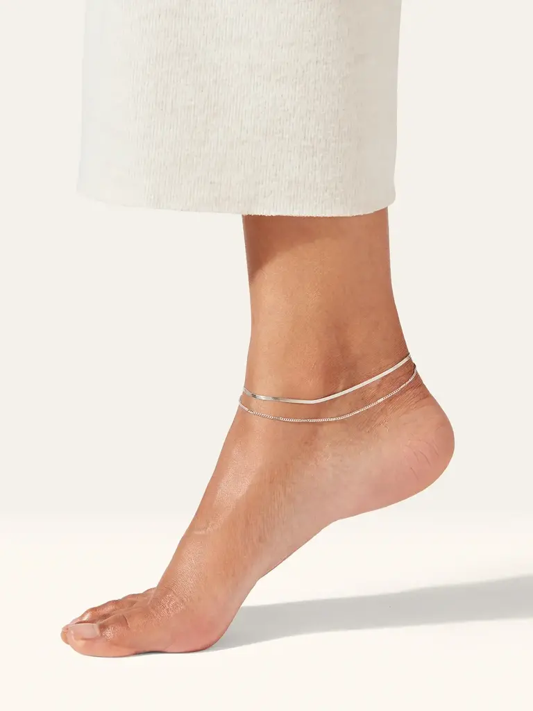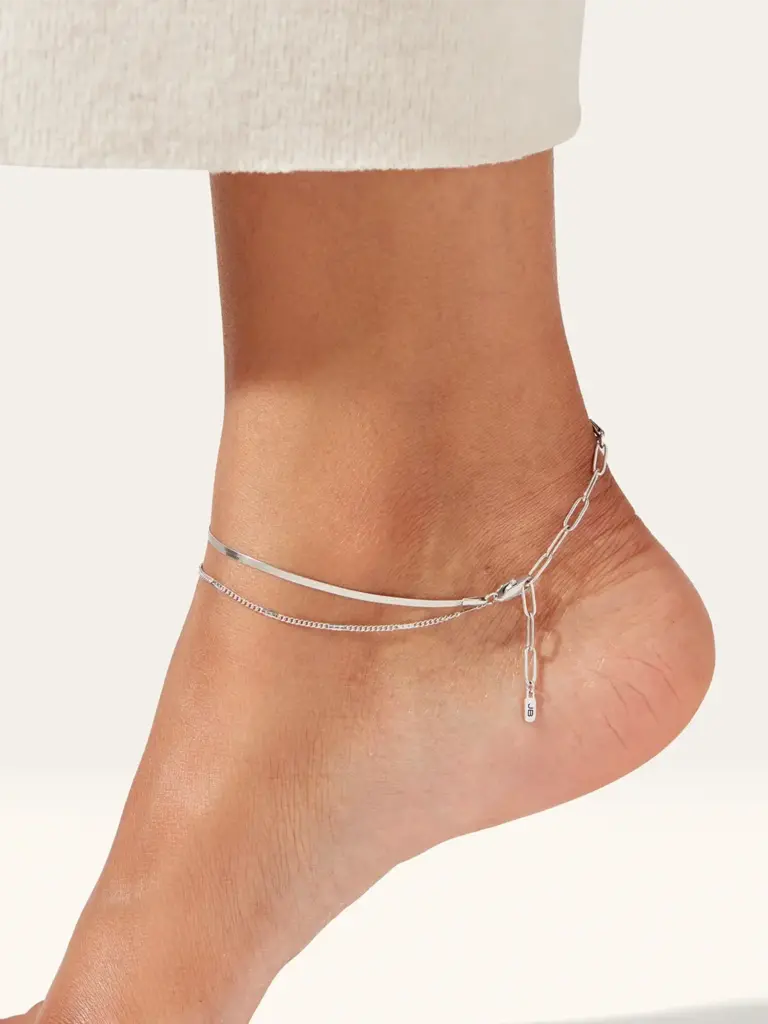 Le look d'un bracelet de cheville dans un modèle facile à porter et résistant à l'eau. Le bracelet de cheville Surfside est orné d'une chaîne en serpent à chevrons et est associé à une chaîne estampillée pour une texture moderne. Finition en argent poli.