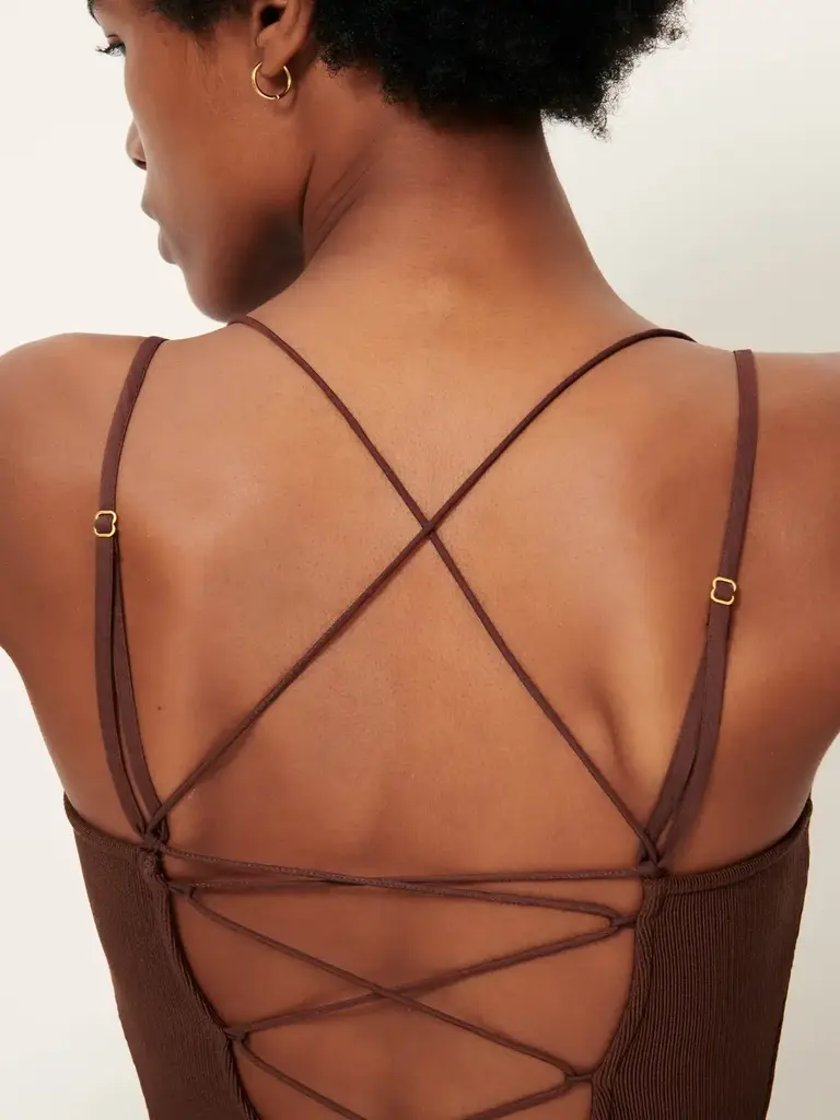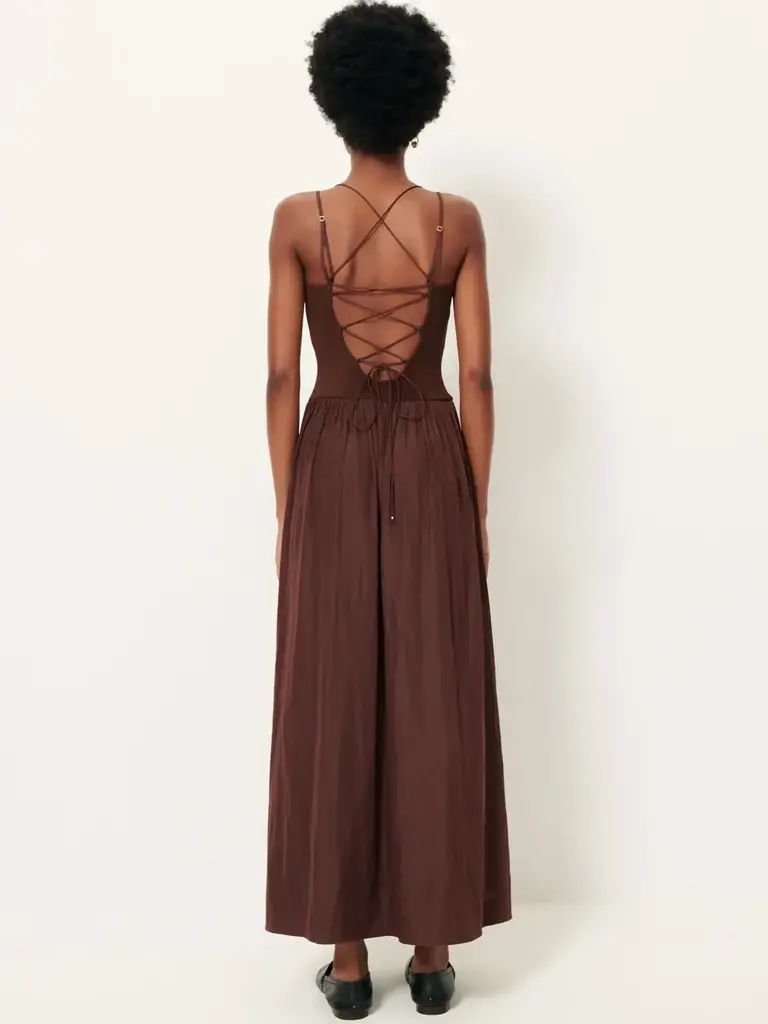 Robe brune à dos ouvert de la marque Sessùn.