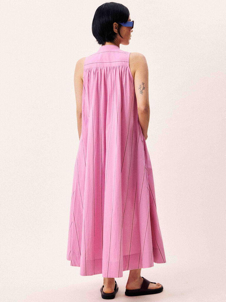 Robe longue ample rose à fine rayures verticales de la marque Frnch.