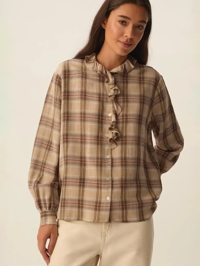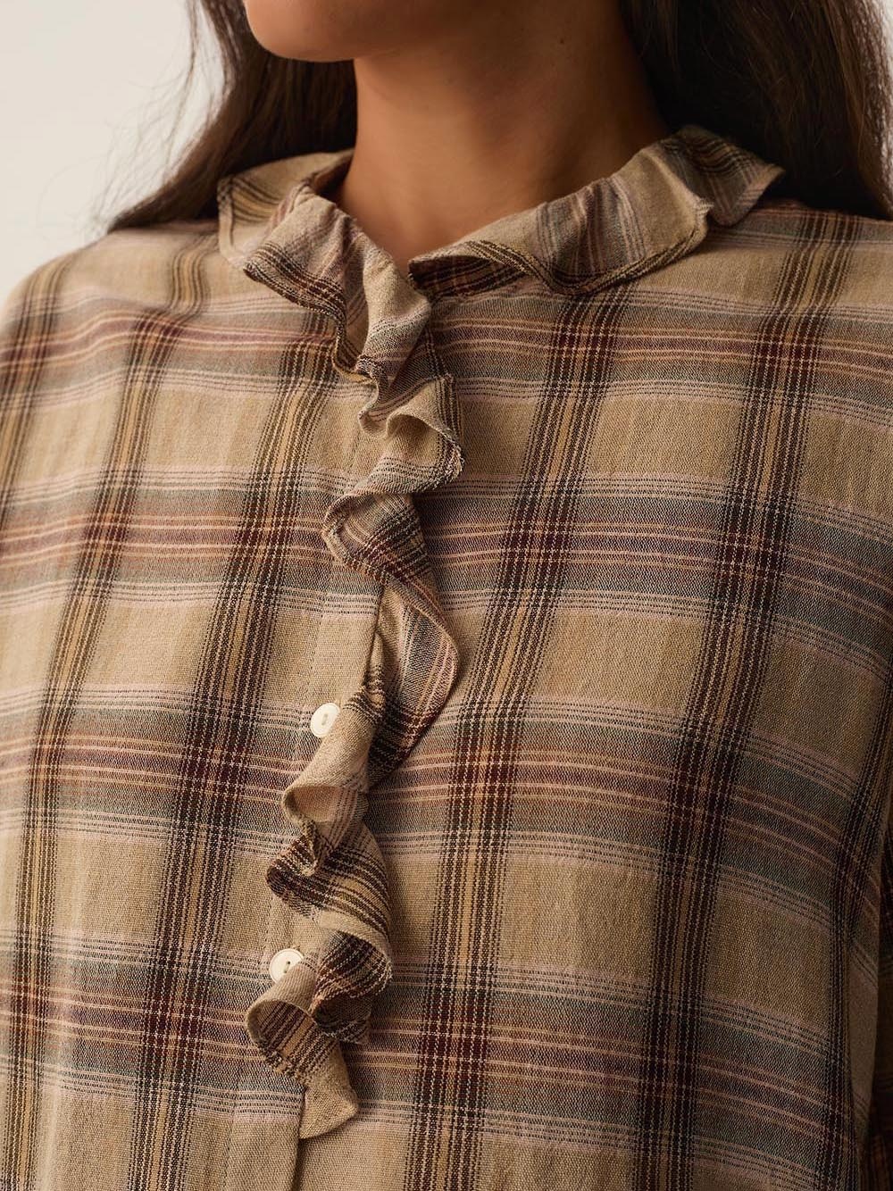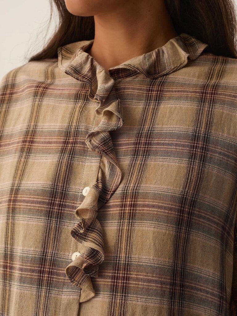 Blouse carrelée à volants de la marque Des Petits Hauts.