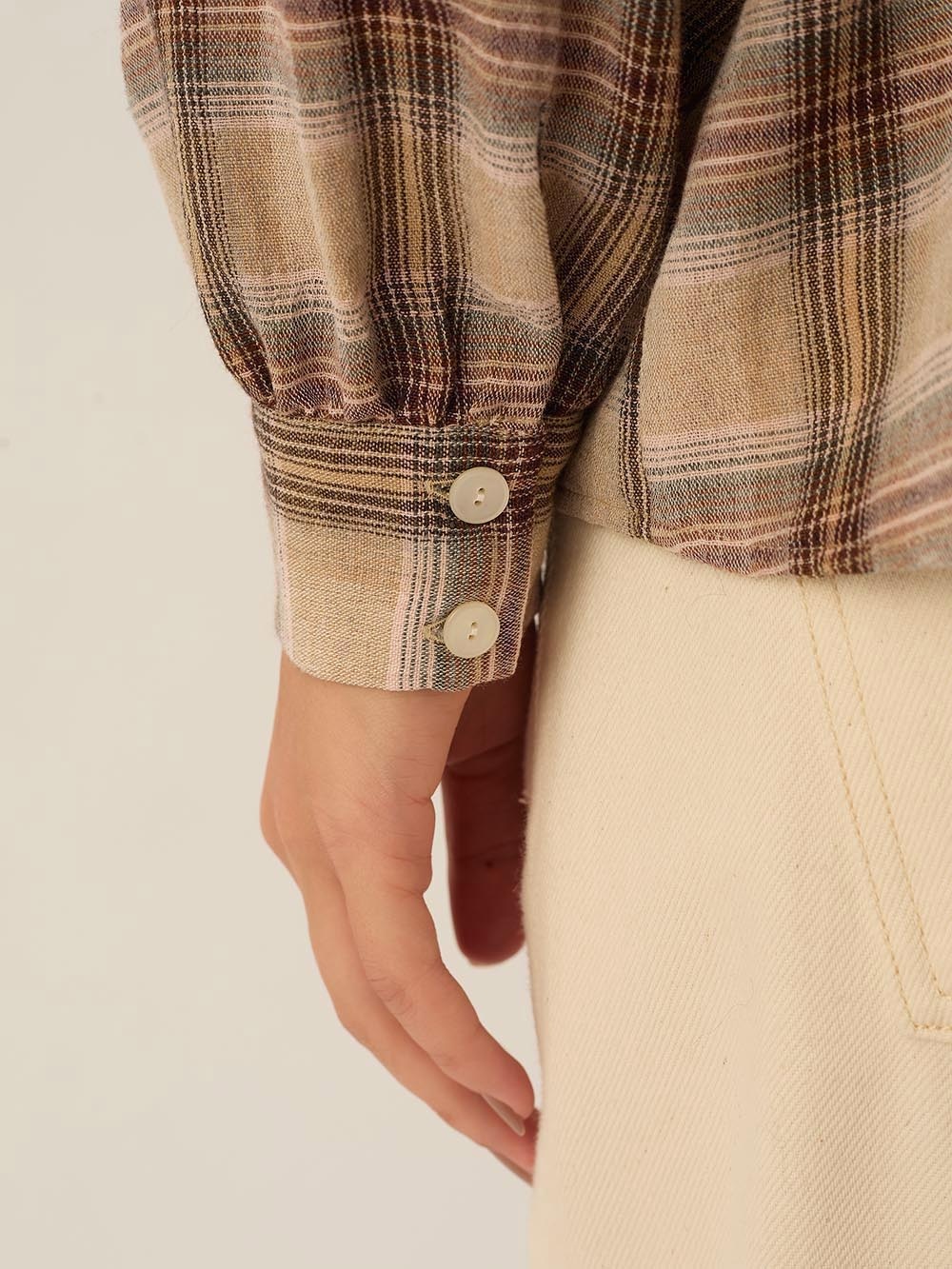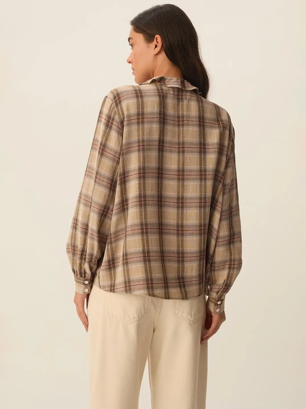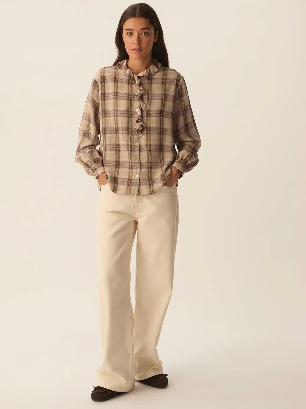 Blouse carrelée à volants de la marque Des Petits Hauts.