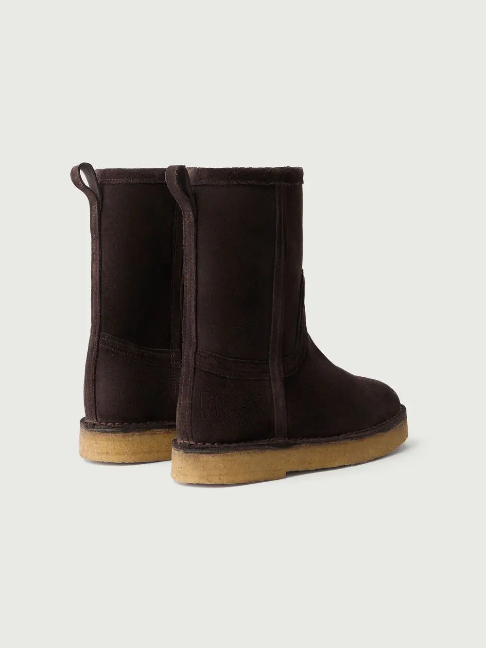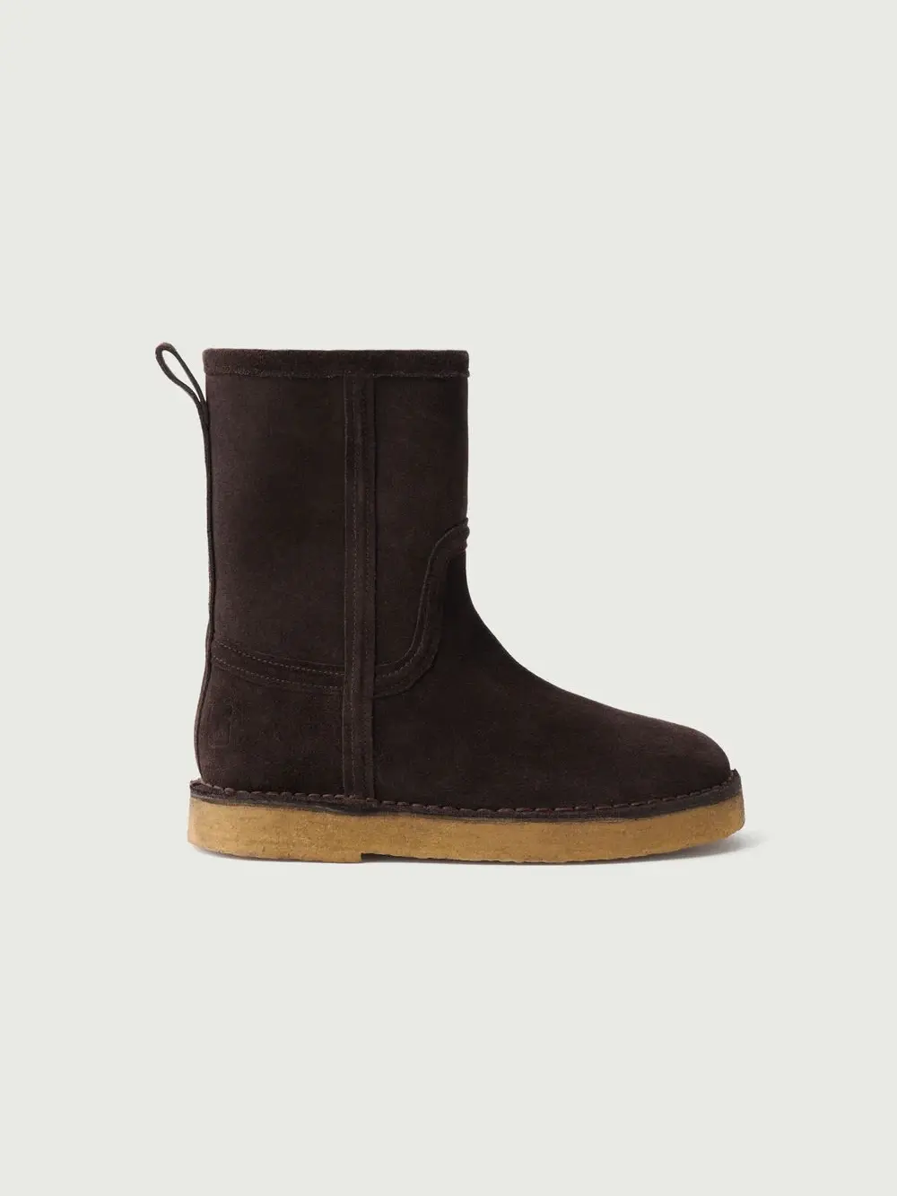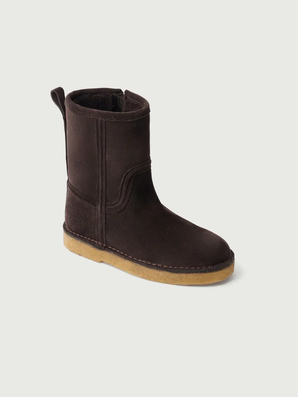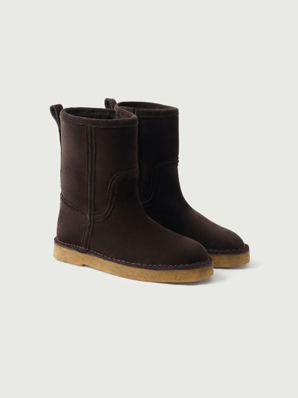 Bottes doublées en croute de cuir marron foncé de la marque Soeur.
