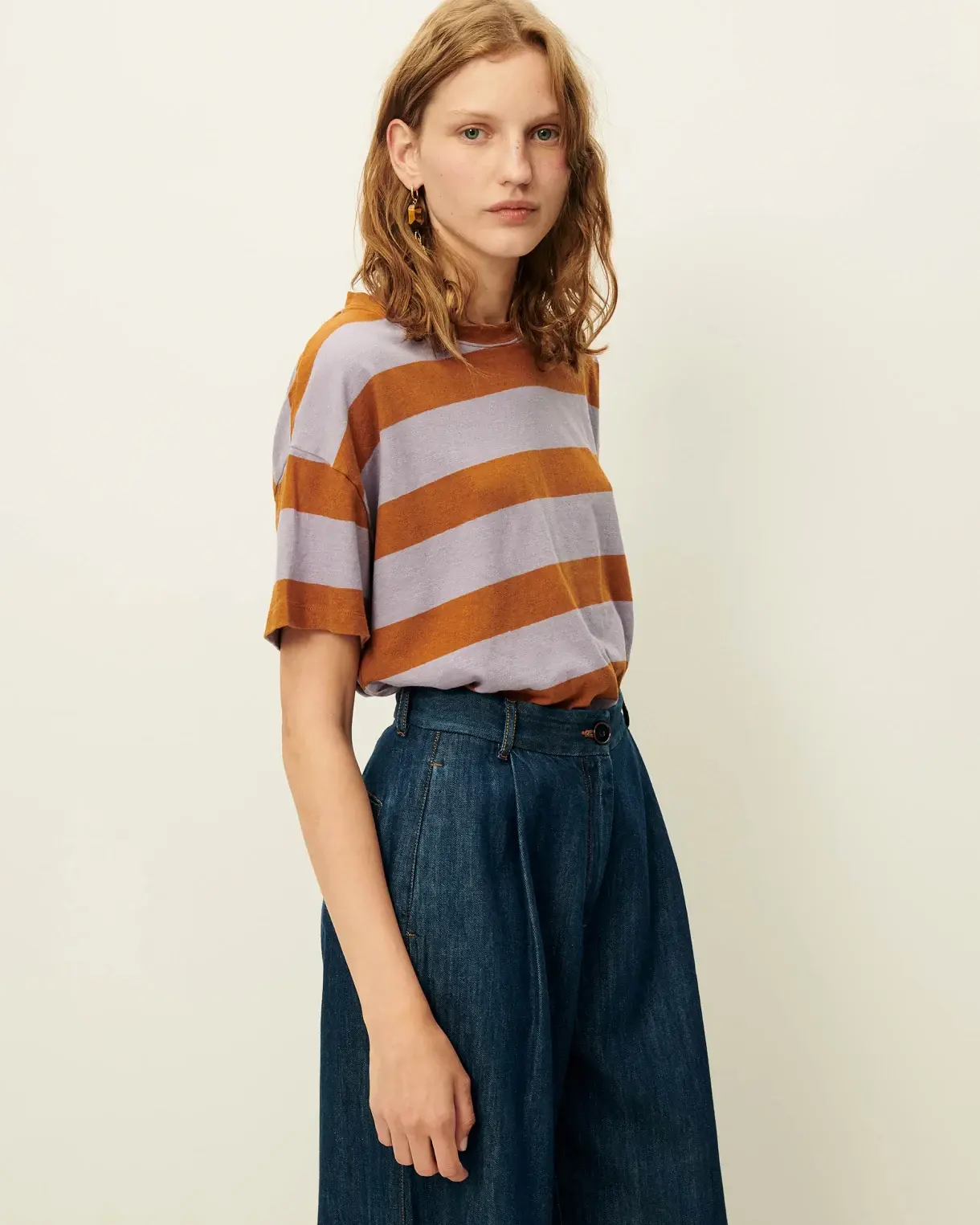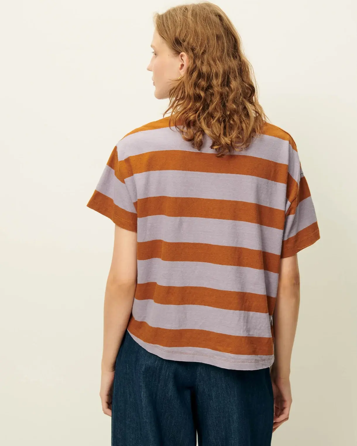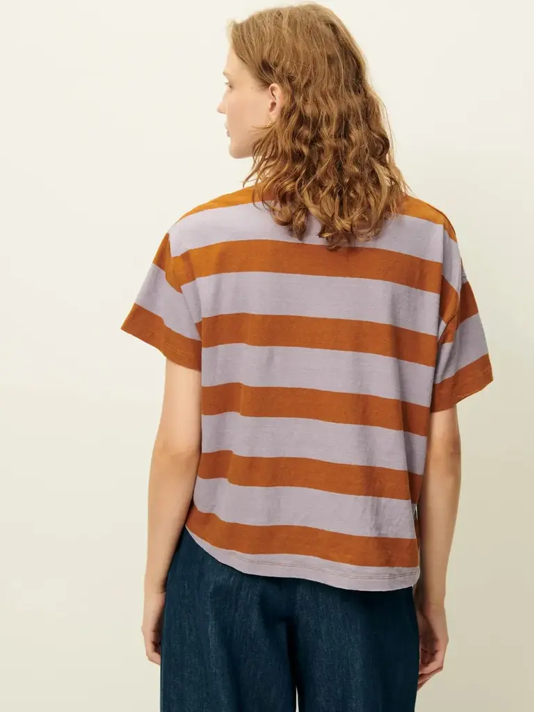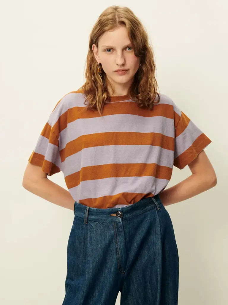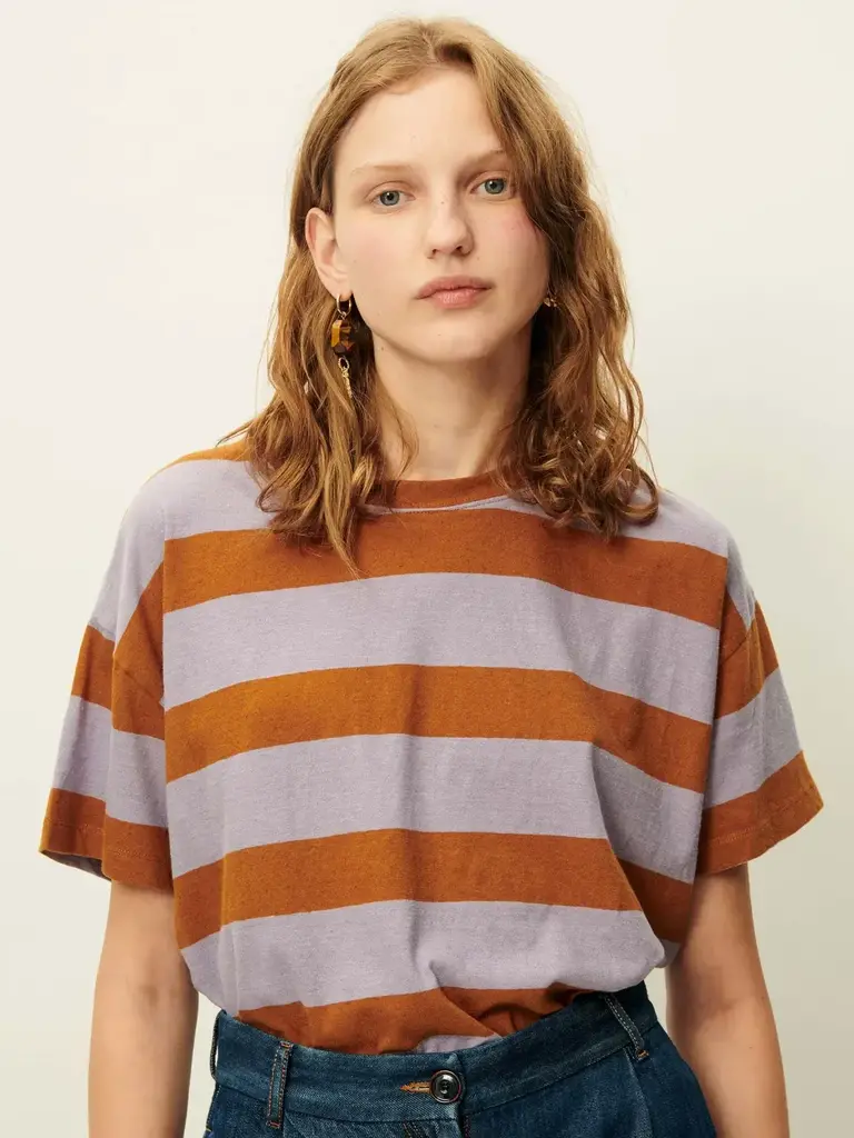 T-shirt ample à manches courtes en jersey rayé de coton et lin, confectionné au Portugal.