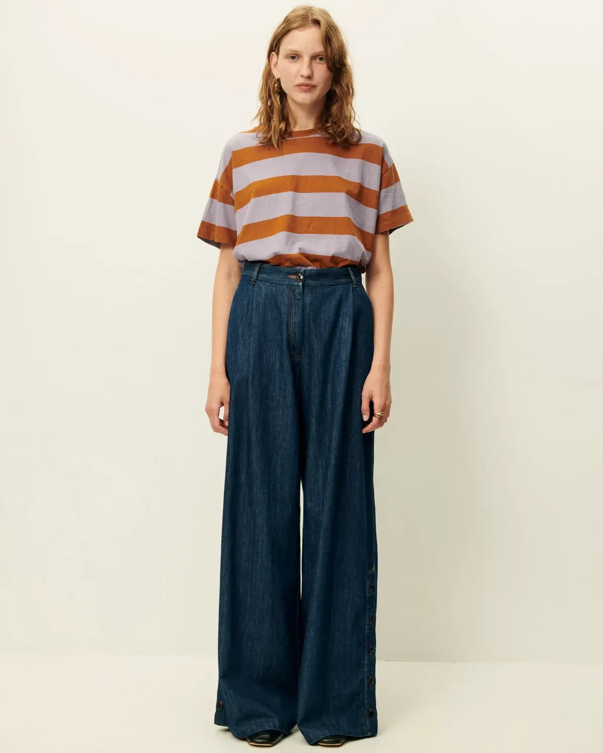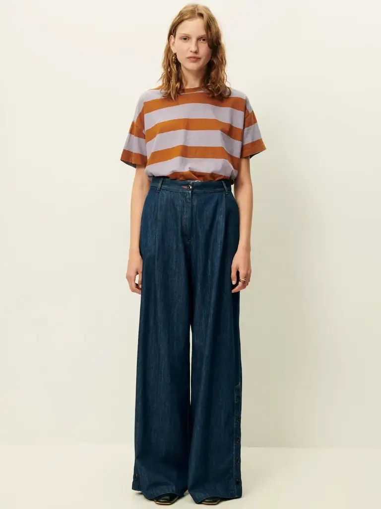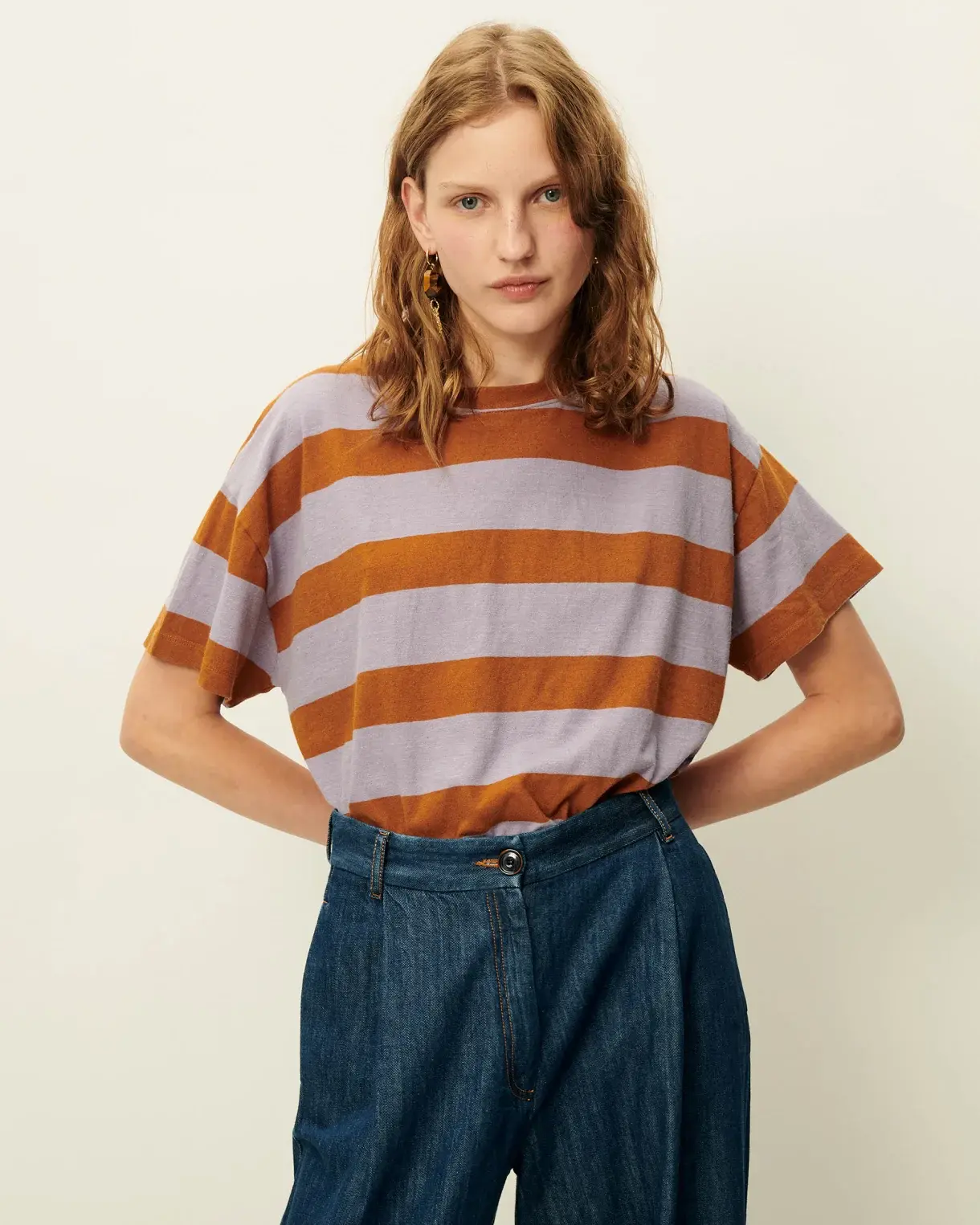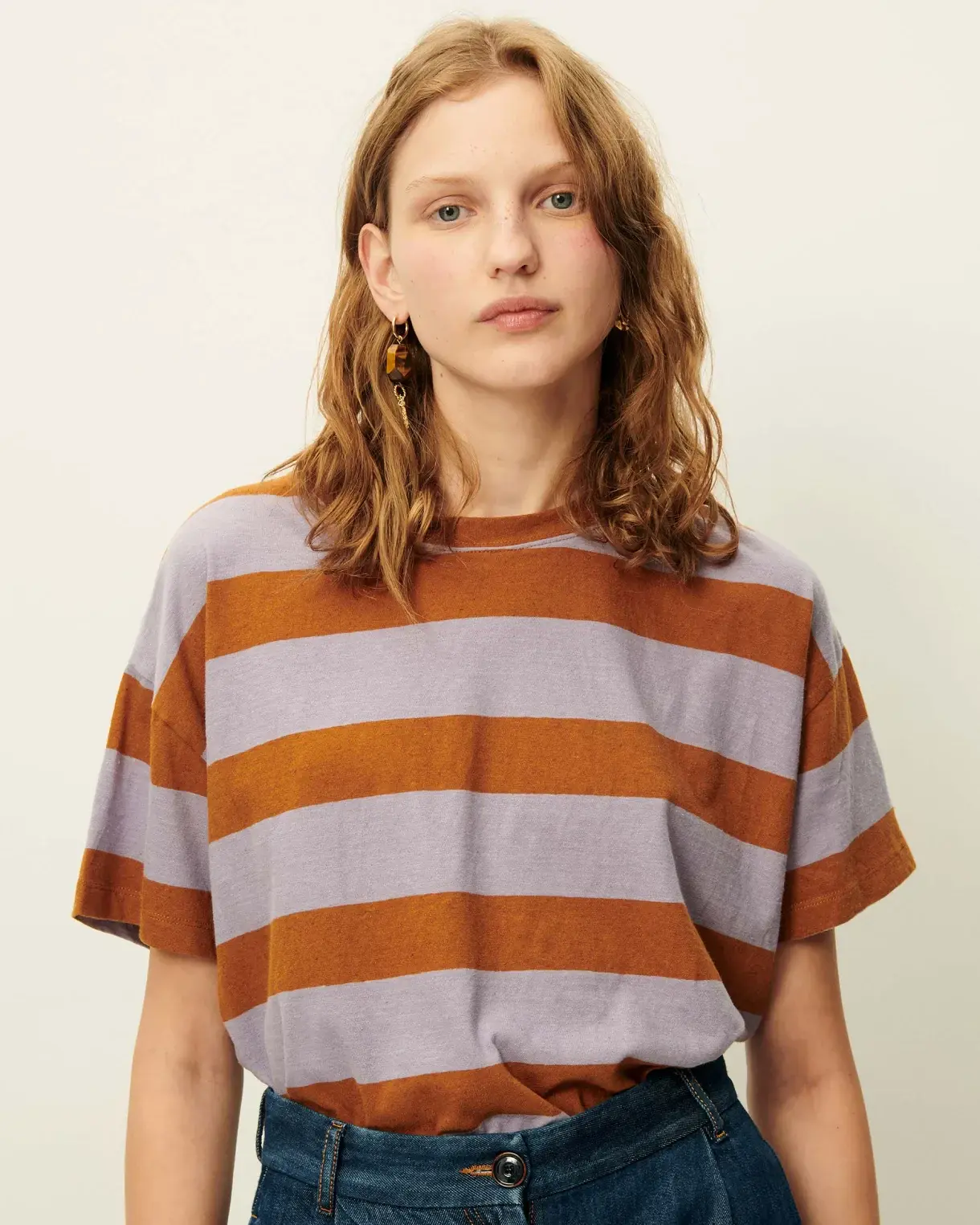T-shirt ample à manches courtes en jersey rayé de coton et lin, confectionné au Portugal.