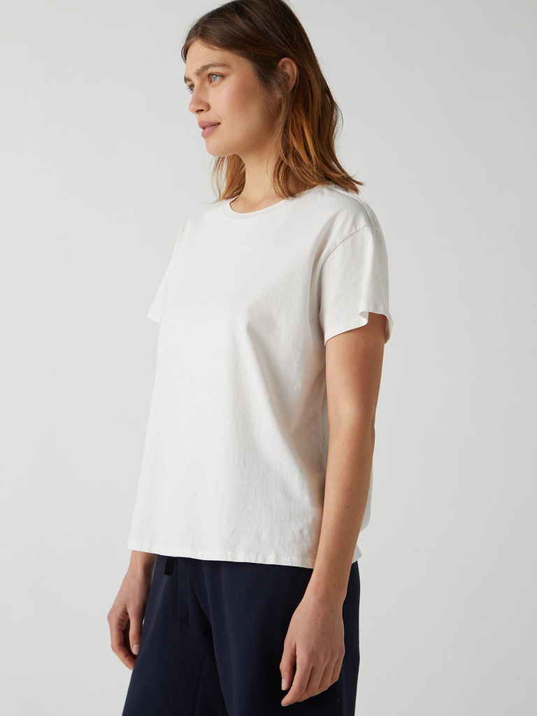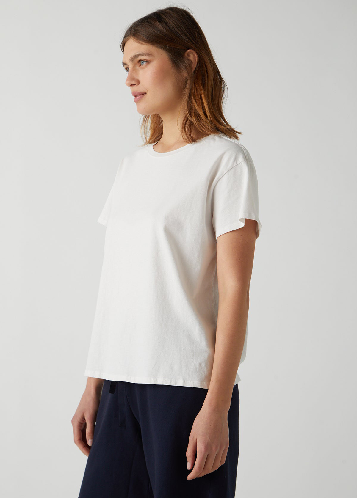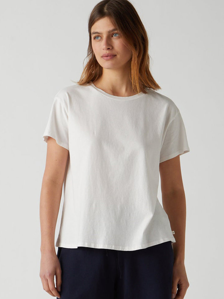 Le t-shirt qui peut passer du travail à l'entraînement. Confectionné en coton biologique doux au toucher, ce classique à la coupe décontractée peut être porté avec des denim ou des pantalons habillés. Chic ou décontracté, c'est vous qui décidez!