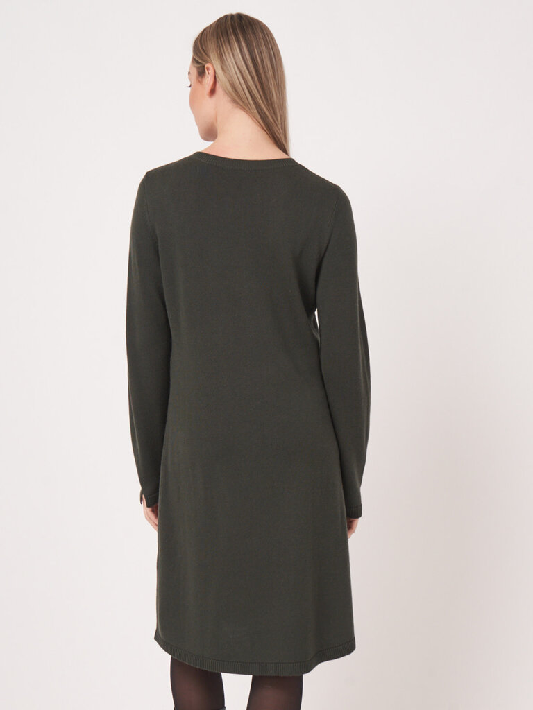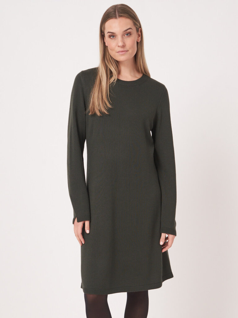 La robe en maille REPEAT vous séduira par son confort, tout en restant une pièce efficace à porter lors d'une occasion spéciale. Son encolure ronde, ses manches longues et ses mailles fines lui confèrent un style simple mais moderne.