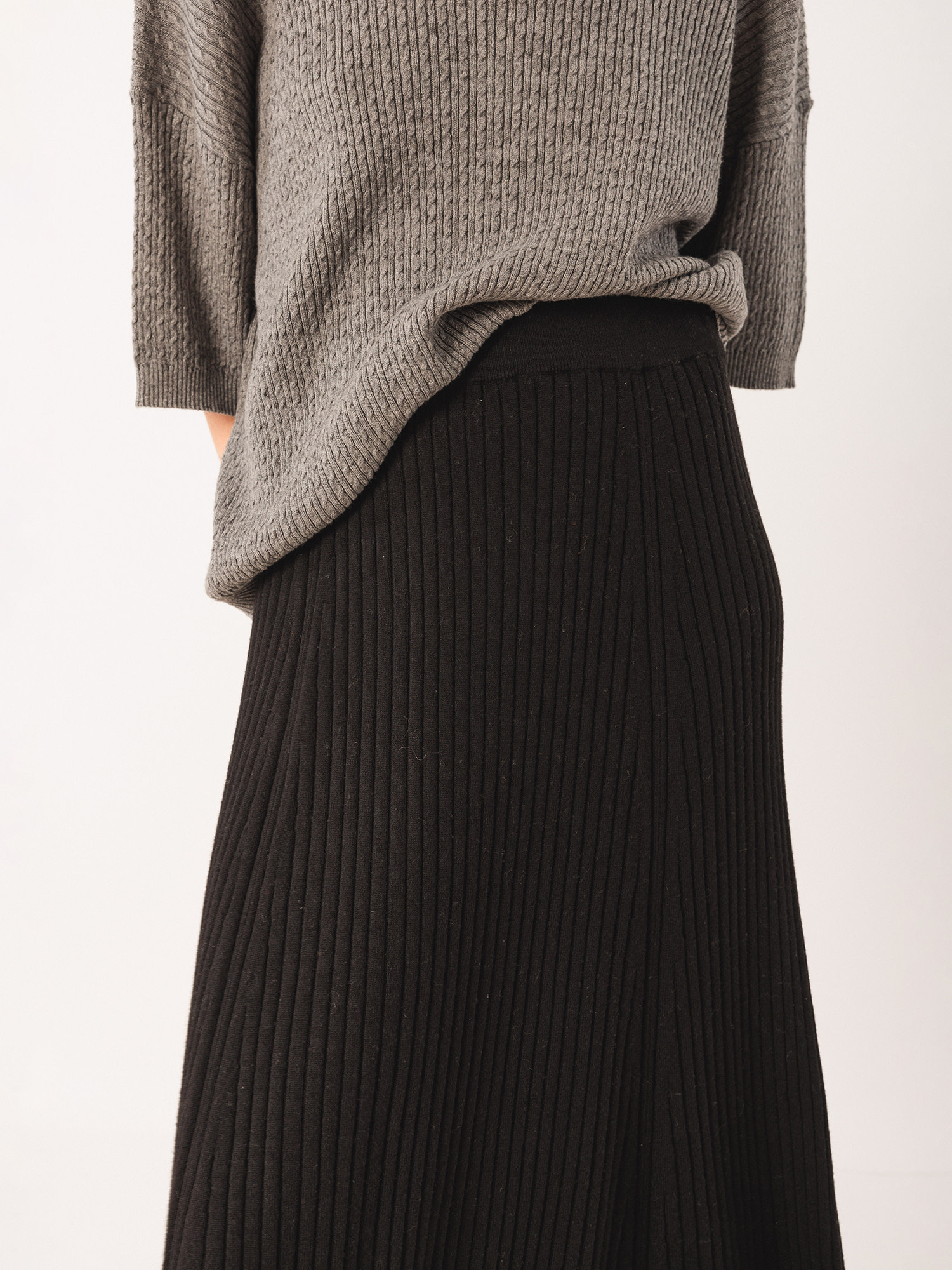 Jupe en noir en laine côtelée de la marque Indi & Cold.