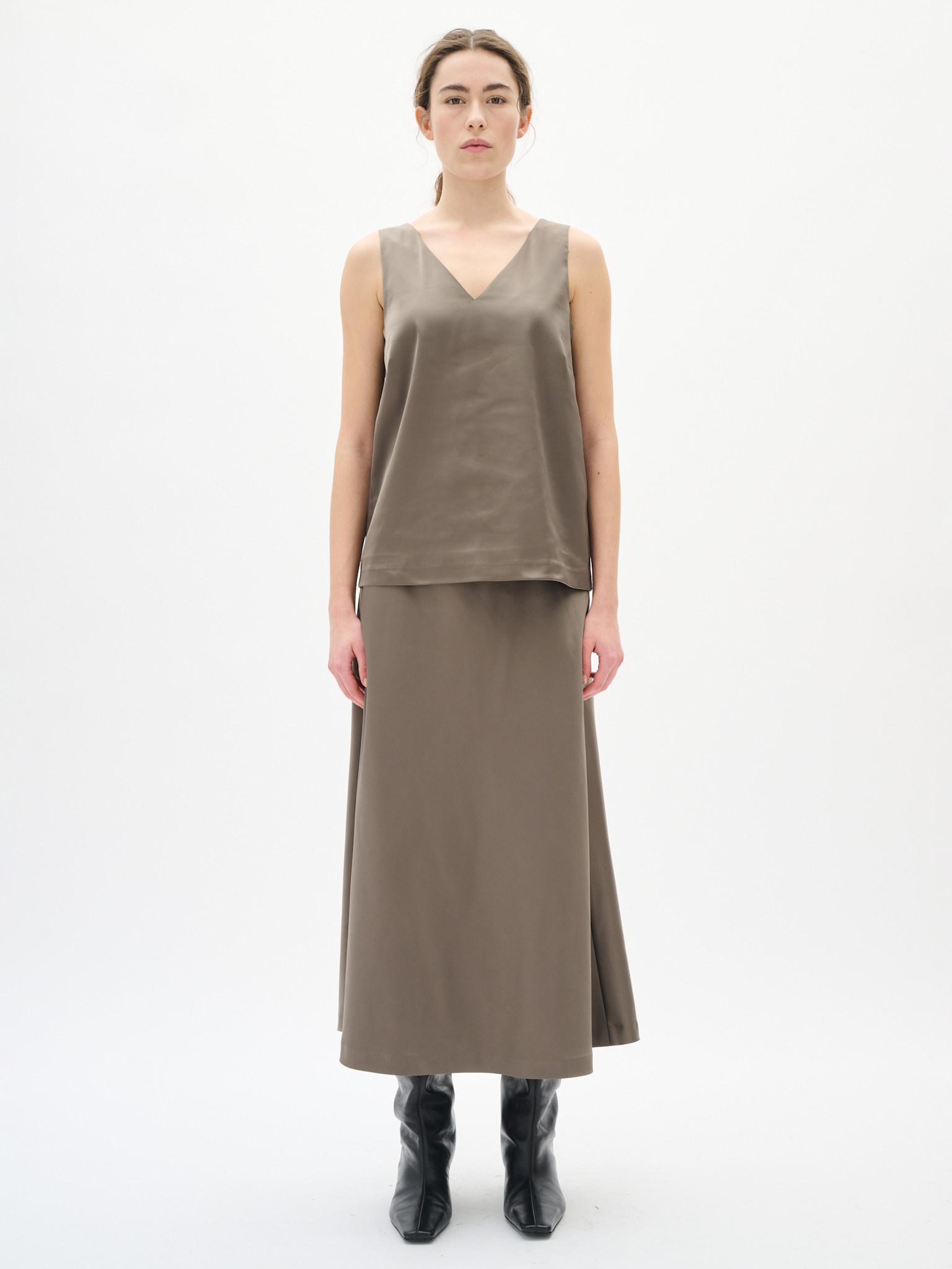 Jupe satinée beige taupe de la marque InWear.