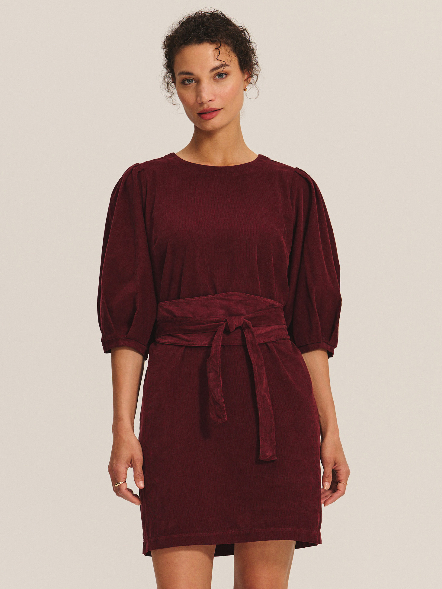 Robe en mini corduroy bordeaux de la marque Velvet.